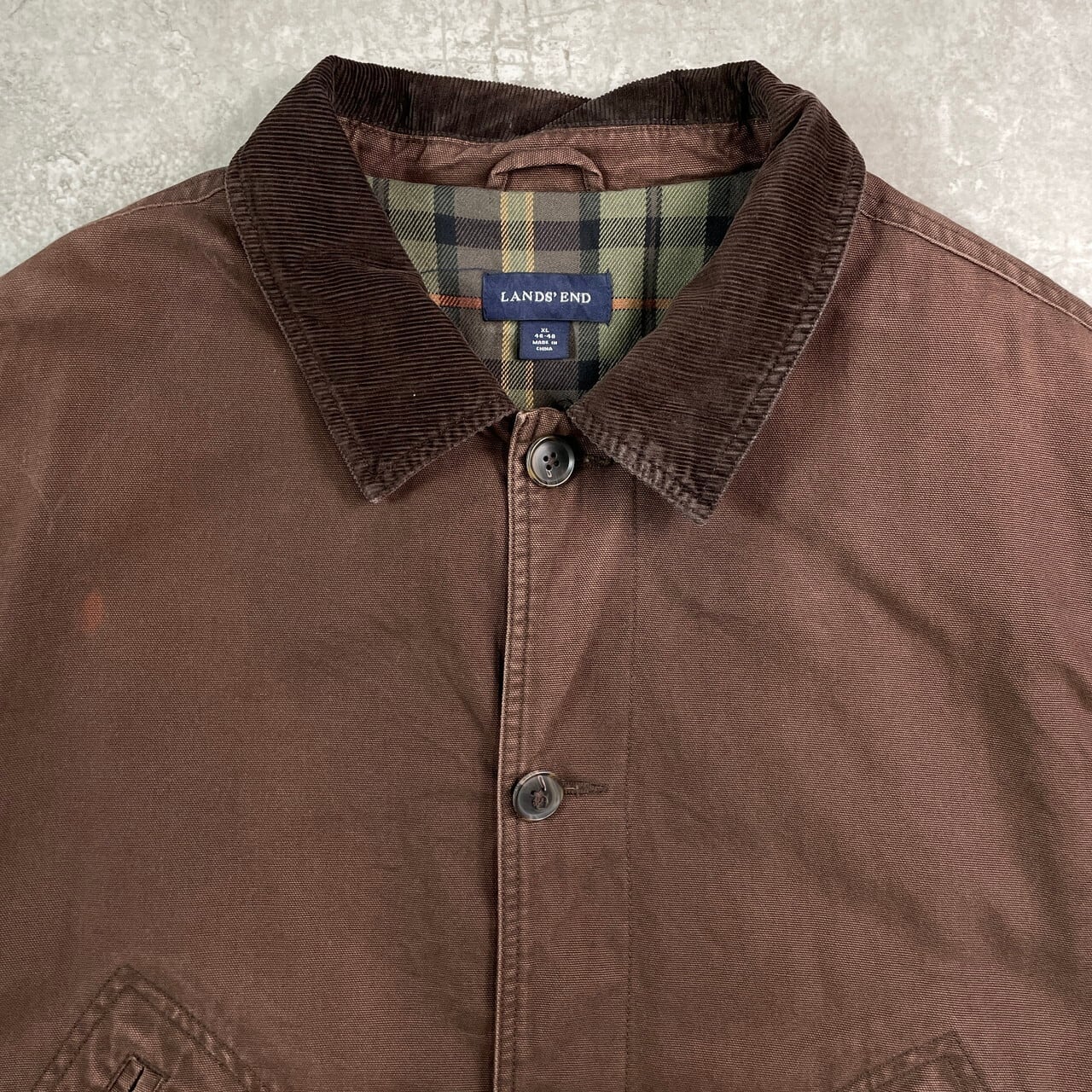 ■00年代 LANDS' END ランズエンド コーデュロイ襟 ハンティングジャケット メンズXL 古着 00s VINTAGE ヴィンテージ チェックネルライナー 茶色【コットンジャケット】/ブラウン