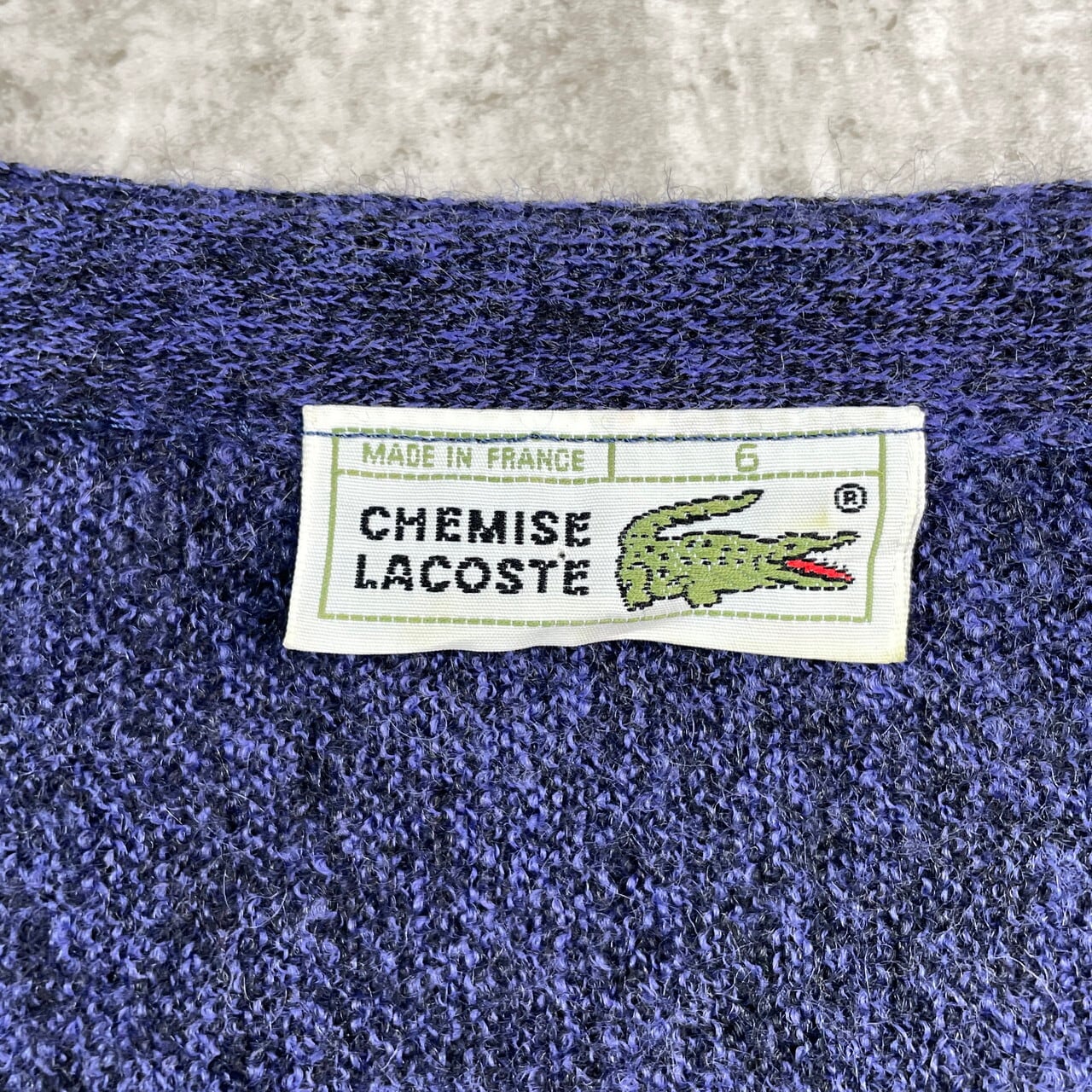 80年代 フランス製 LACOSTE ラコステ ウールニットカーディガン メンズL相当 古着 80s ヴィンテージ VINTAGE ライトパープル ブラック【ニットセーター】/パープル