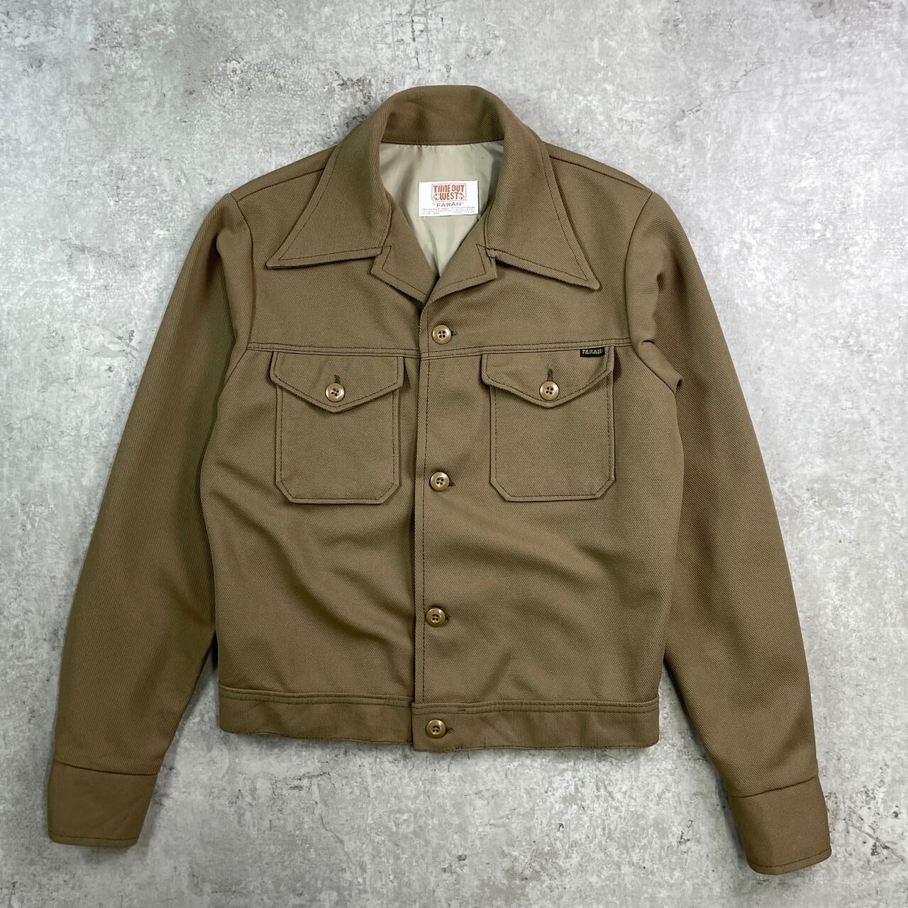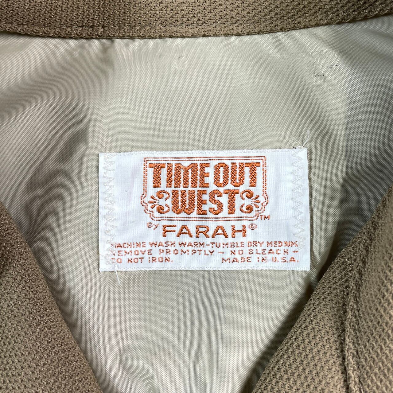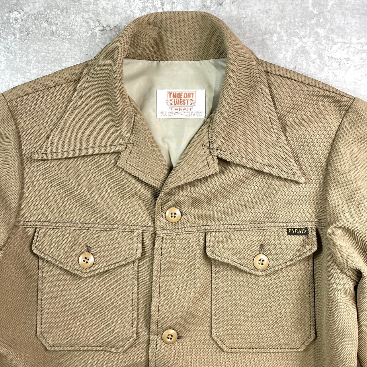 70年代 USA製 FARAH ポリエステルジャケット メンズM相当 古着 70S VINTAGE ヴィンテージ トラッカージャケット ポリジャケット スタプレ【ワークジャケット】/ベージュ