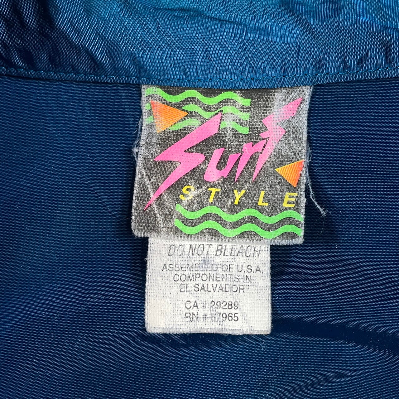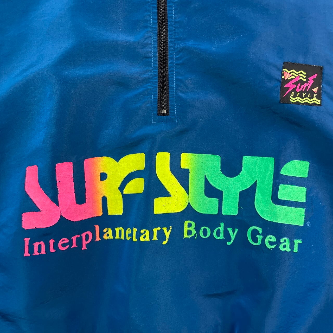 ■80年代 SURF STYLE サーフスタイル ロゴプリント 袖プリ ハーフジップ ナイロンジャケット メンズXL相当 古着 80s VINTAGE ヴィンテージ プルオーバー 青【ナイロンジャケット】/ブルー