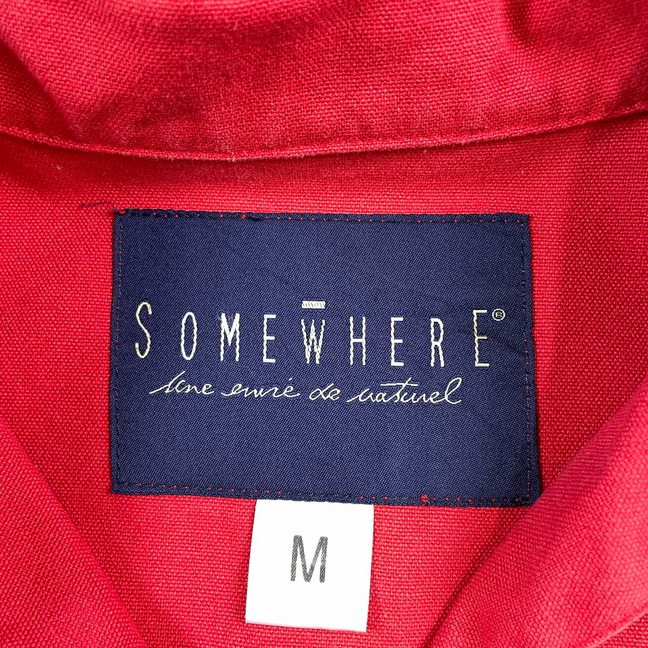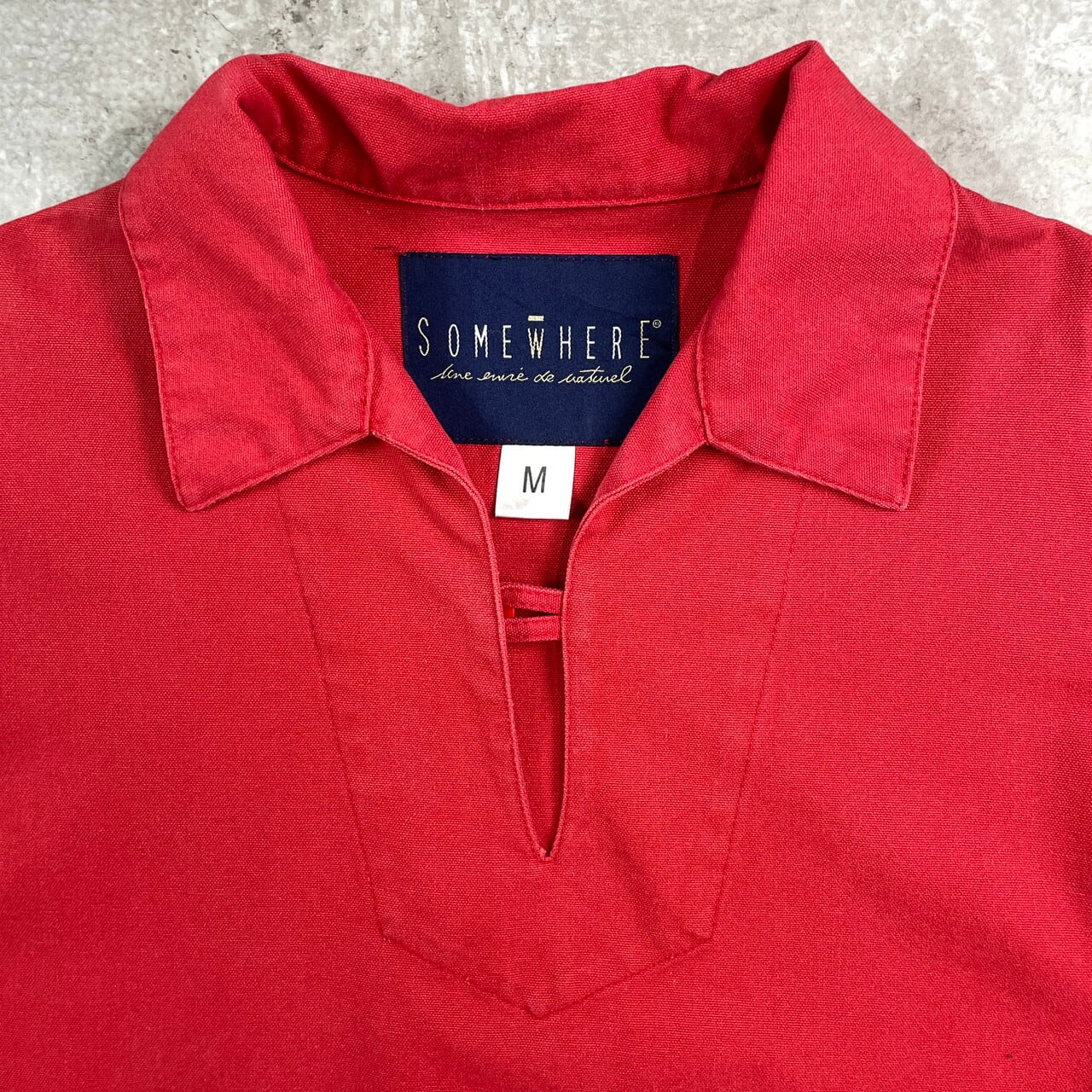 SOMEWHERE ユーロ フィッシャーマンスモック ユーロワークジャケット メンズM 古着 キャンバス地 赤【ワークジャケット】/レッド