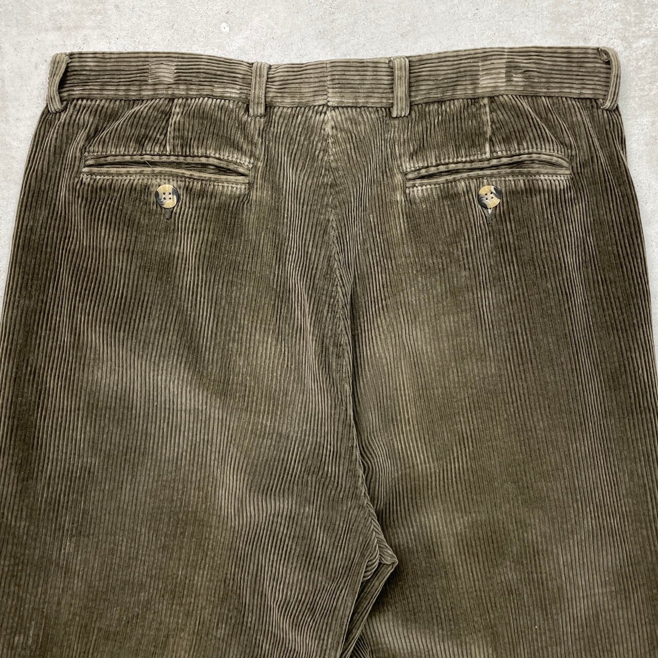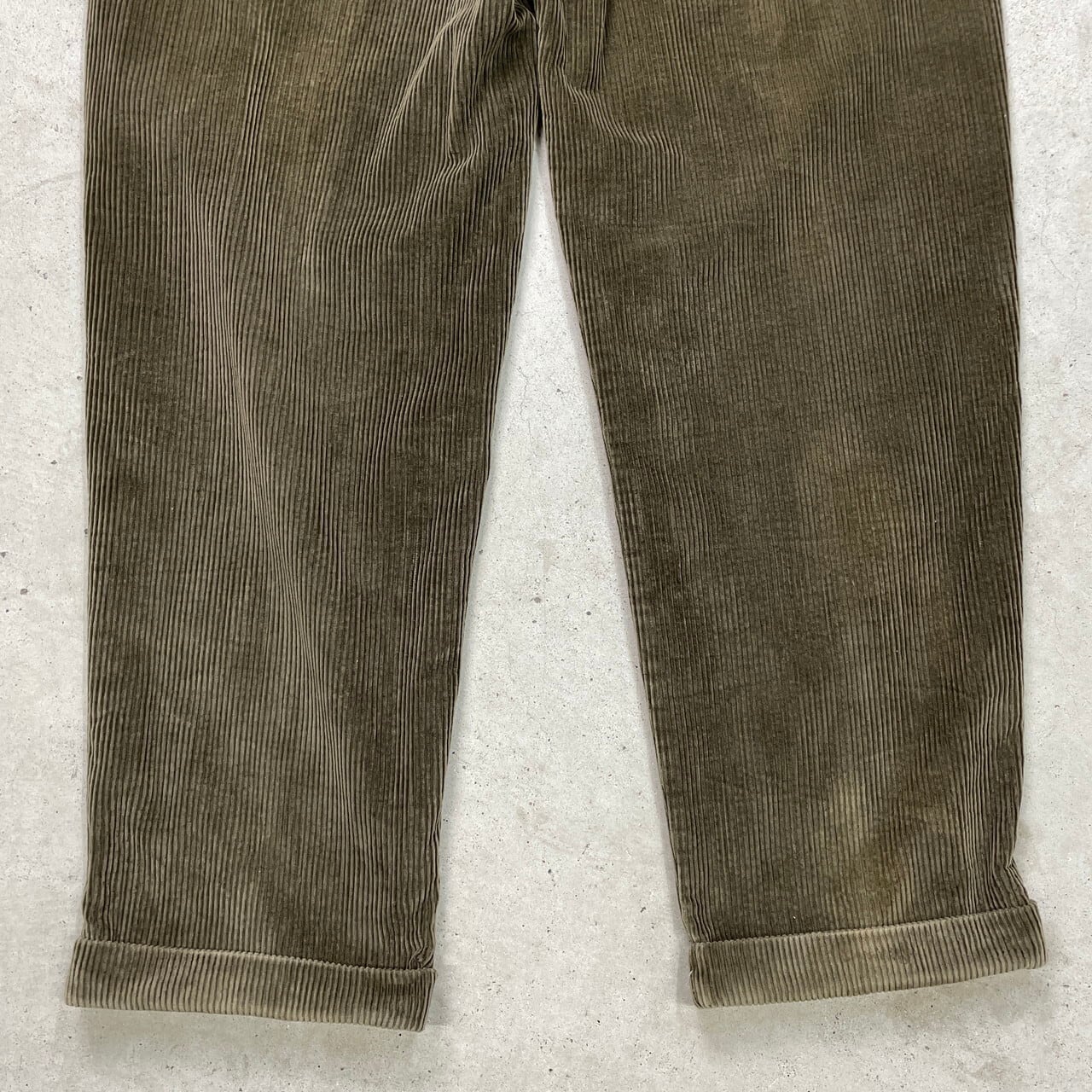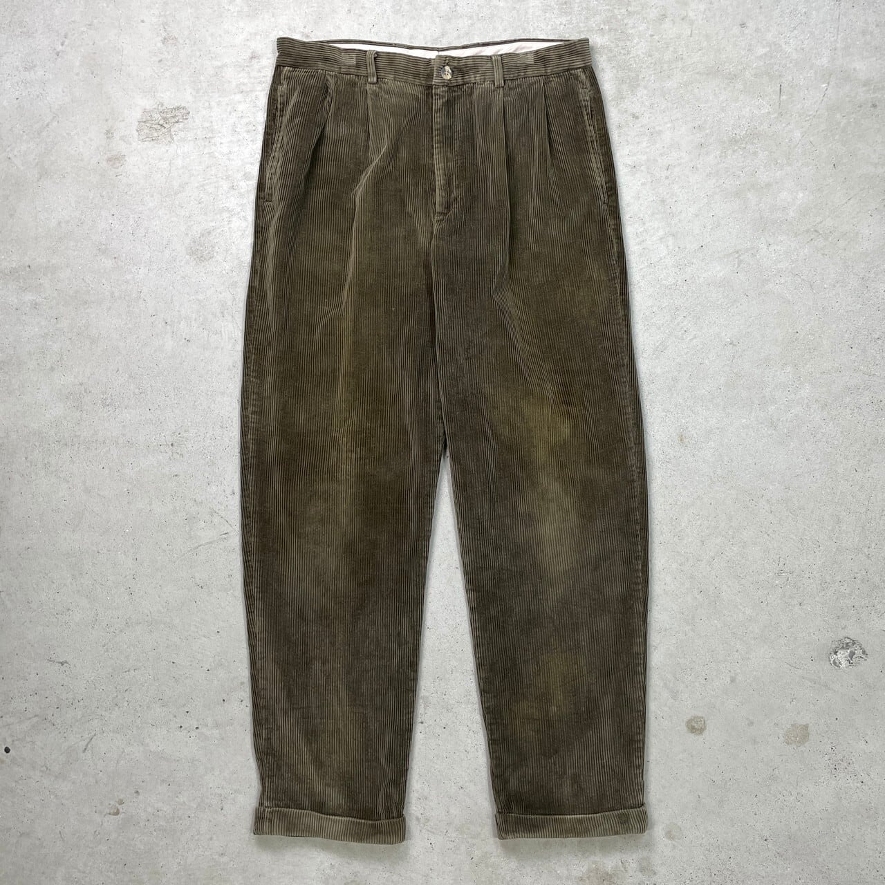 BARACUTA バラクータ 2タック ワイドテーパード 太畝 コーデュロイパンツ メンズW35相当 古着 裾ダブル カーキベージュ【コーデュロイパンツ】/カーキグリーン