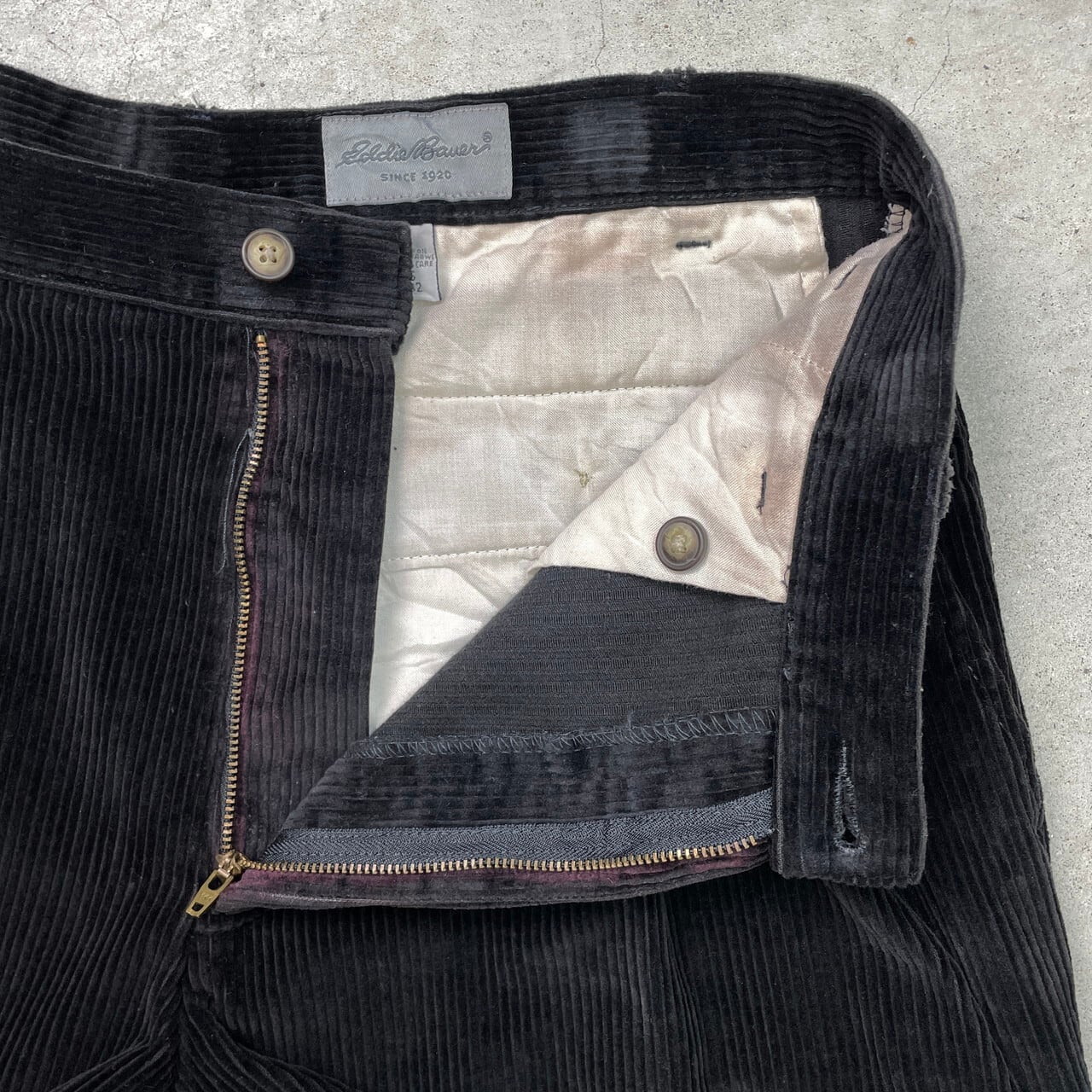 Eddie Bauer エディーバウアー 2タック ワイドテーパード 太畝 コーデュロイパンツ メンズW33 古着 黒【コーデュロイパンツ】/ブラック
