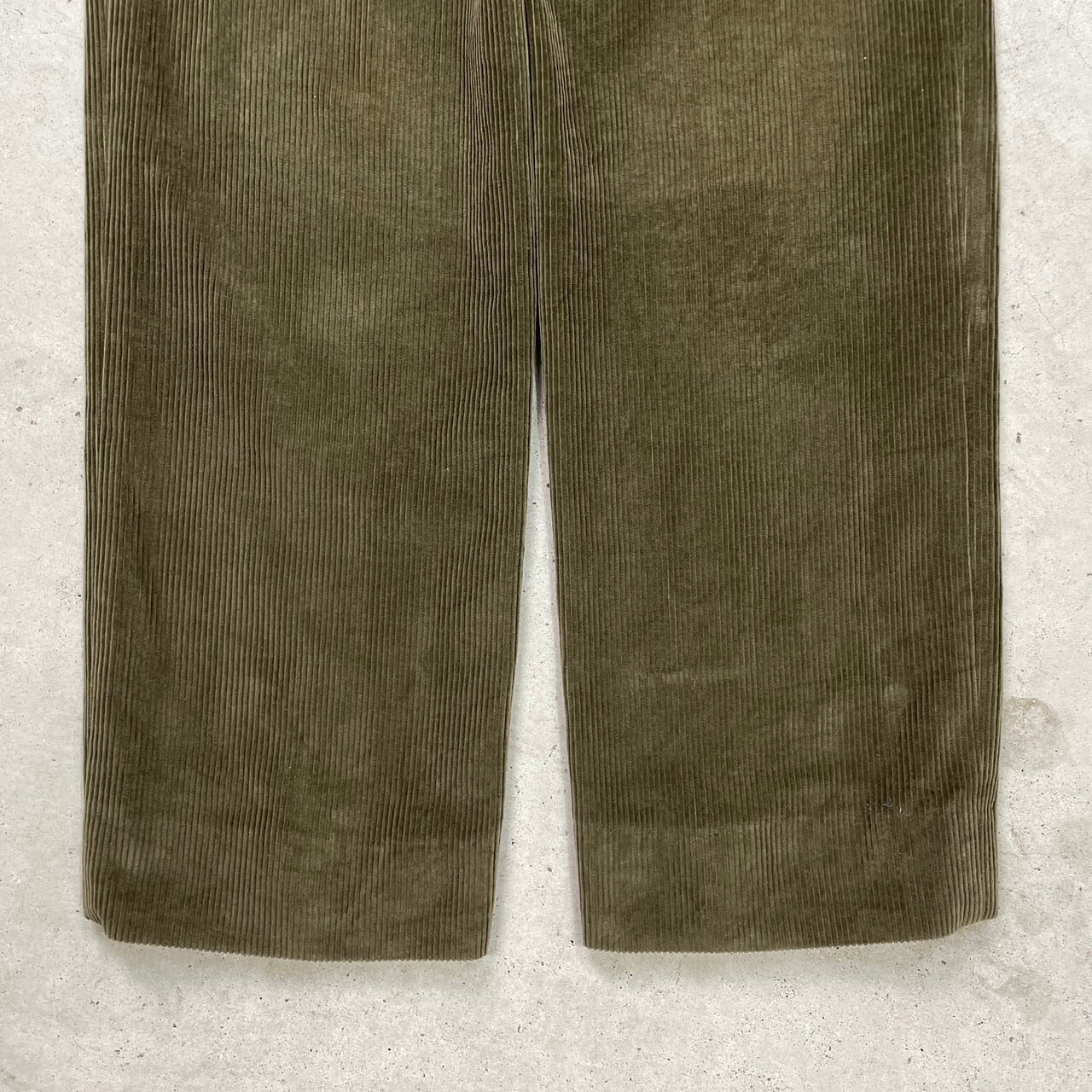 70年代 フランス製 ワイドストレート 太畝 コーデュロイパンツ メンズW35相当 古着 70s VINTAGE ヴィンテージ ユーロ 片爪 ピンロック【コーデュロイパンツ】/カーキグリーン