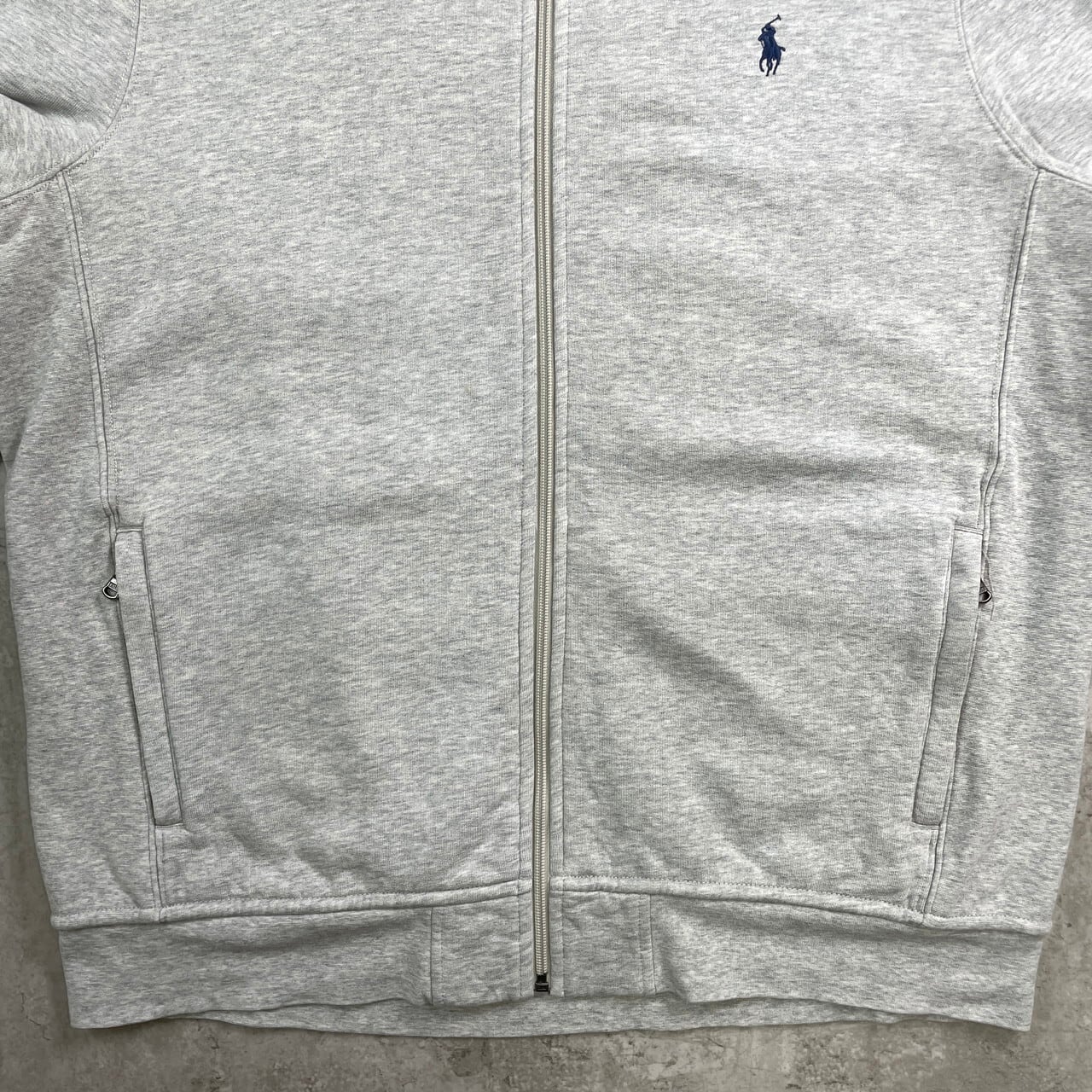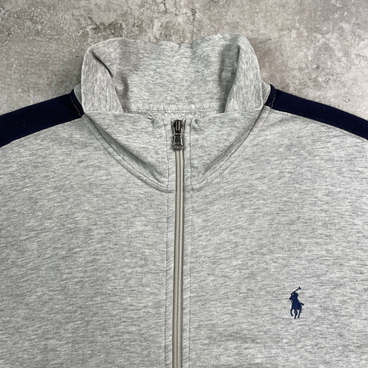 ■Polo by Ralph Lauren ラルフローレン フルジップ リバースタイプ スウェットシャツ メンズXL 古着 ワンポイントロゴ刺繍 トレーナー スリーブライン ネイビー 紺色【スウェット】/グレー