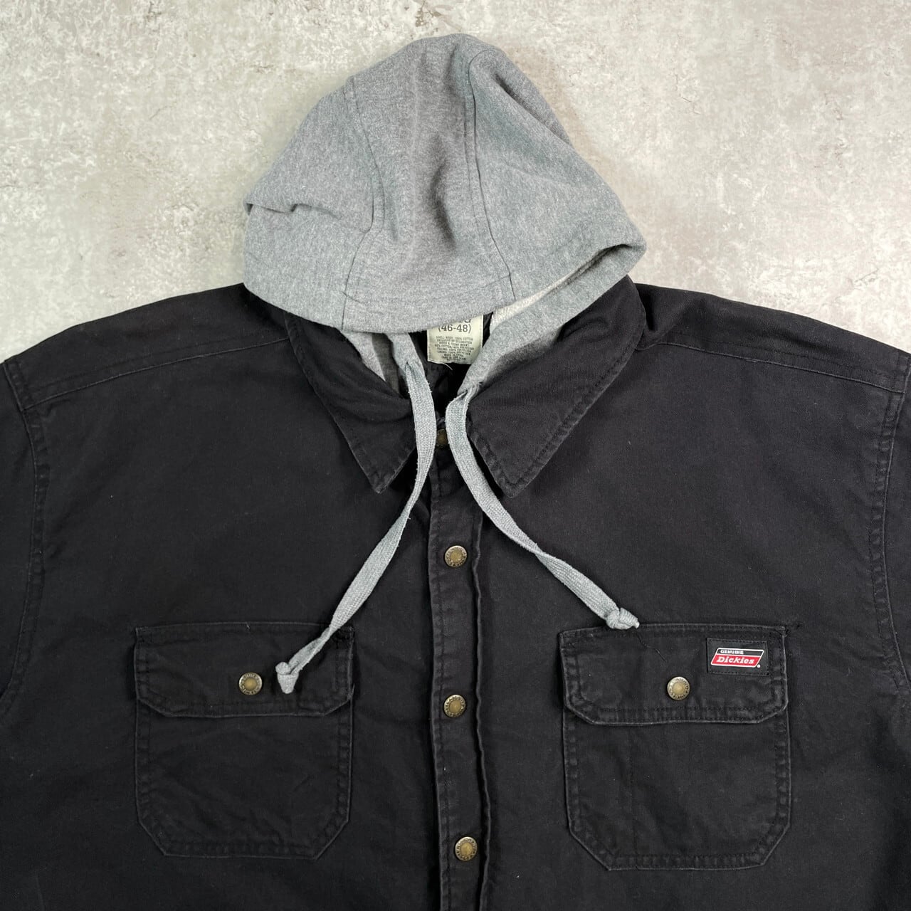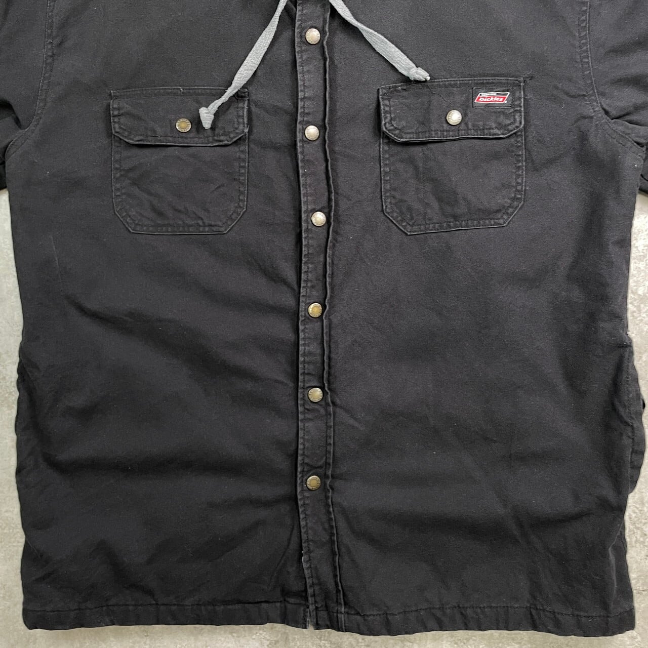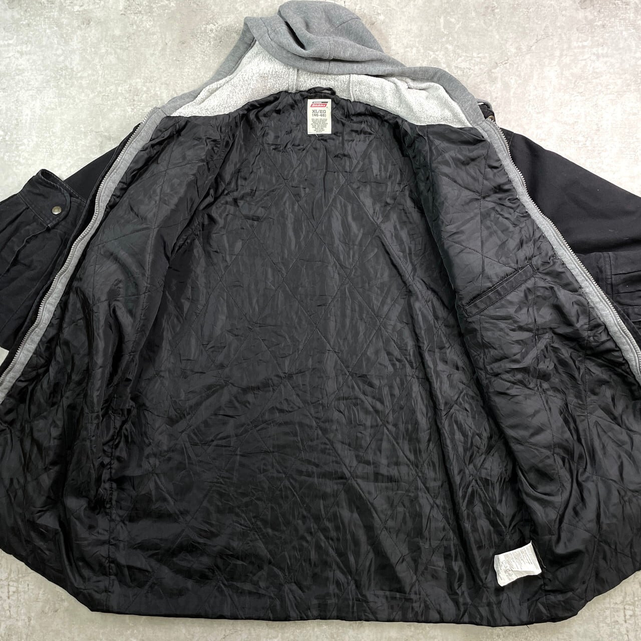 ■Dickies ディッキーズ ダック地 フェイクレイヤード ワークジャケット メンズXL 古着 フルジップパーカー キルティングライナー 黒【ワークジャケット】/ブラック