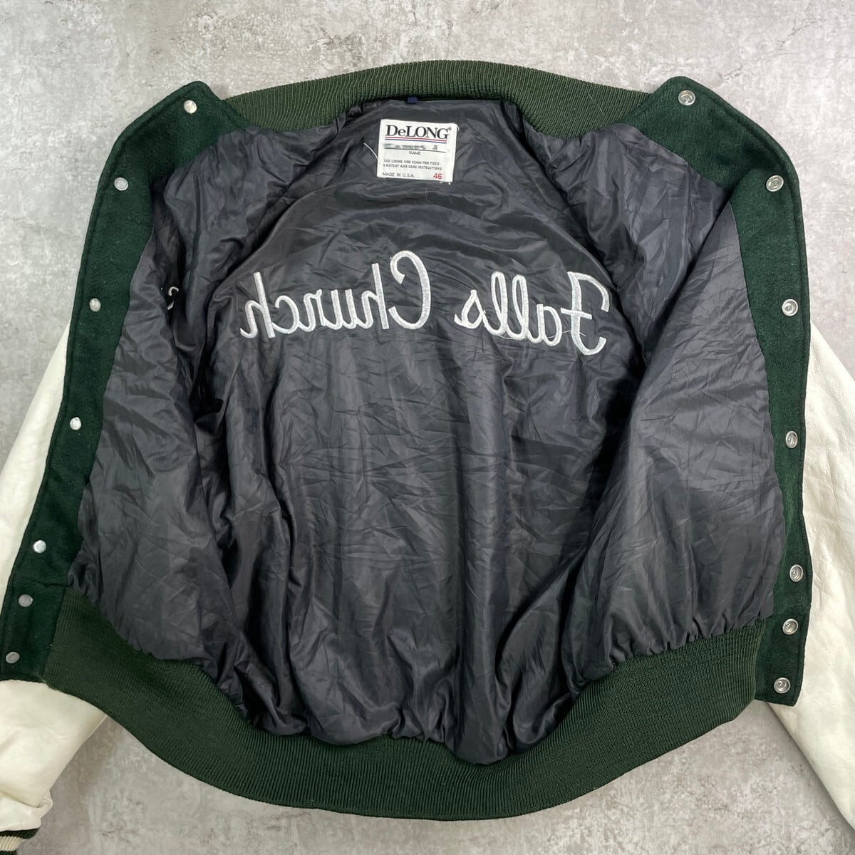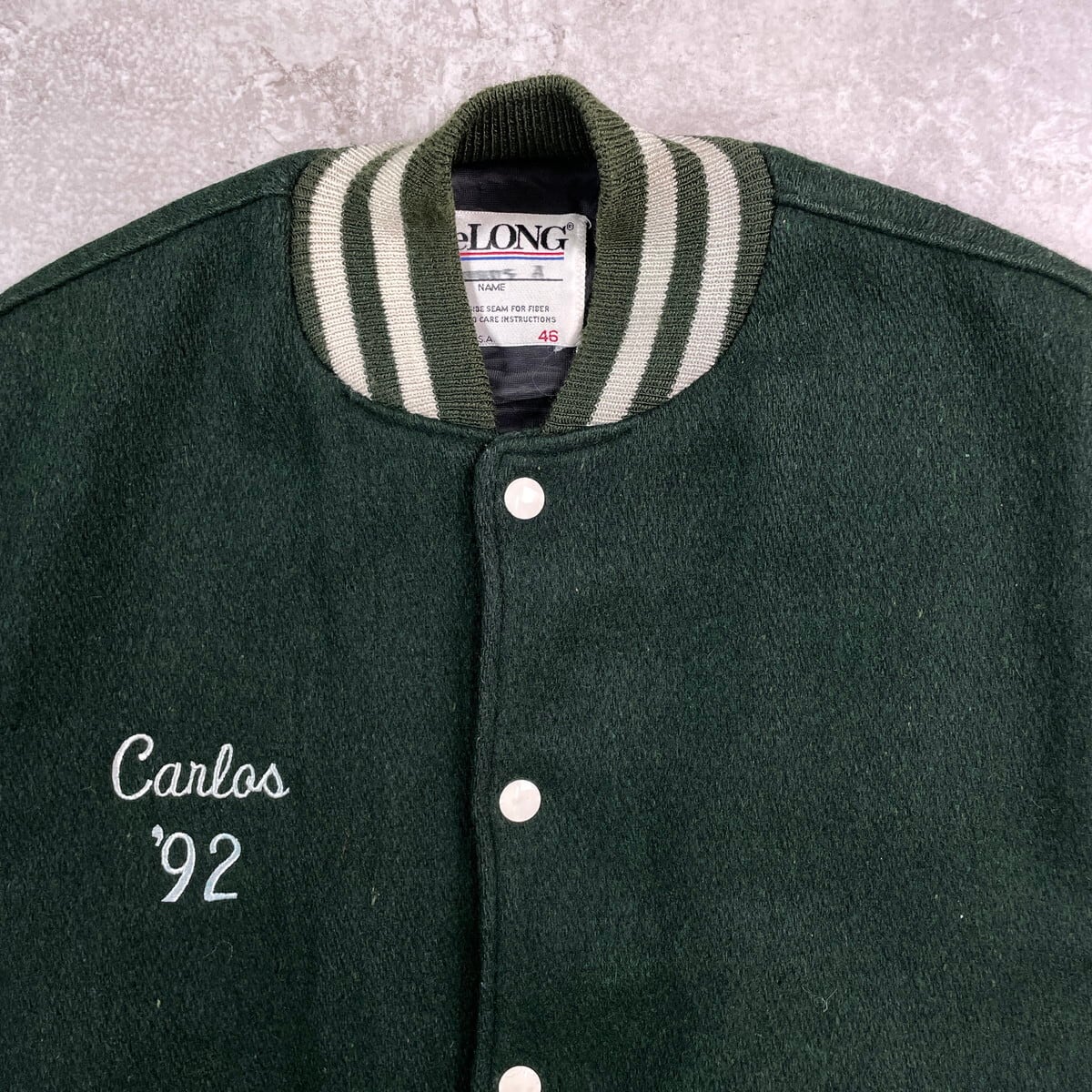■90年代 USA製 DeLONG デロング ウールスタジャン ネーム刺繍 メンズ2XL相当 古着 90s VINTAGE ヴィンテージ アメカジ ビッグサイズ 大きいサイズ 深緑色【ブルゾン・ジャケット】/グリーン
