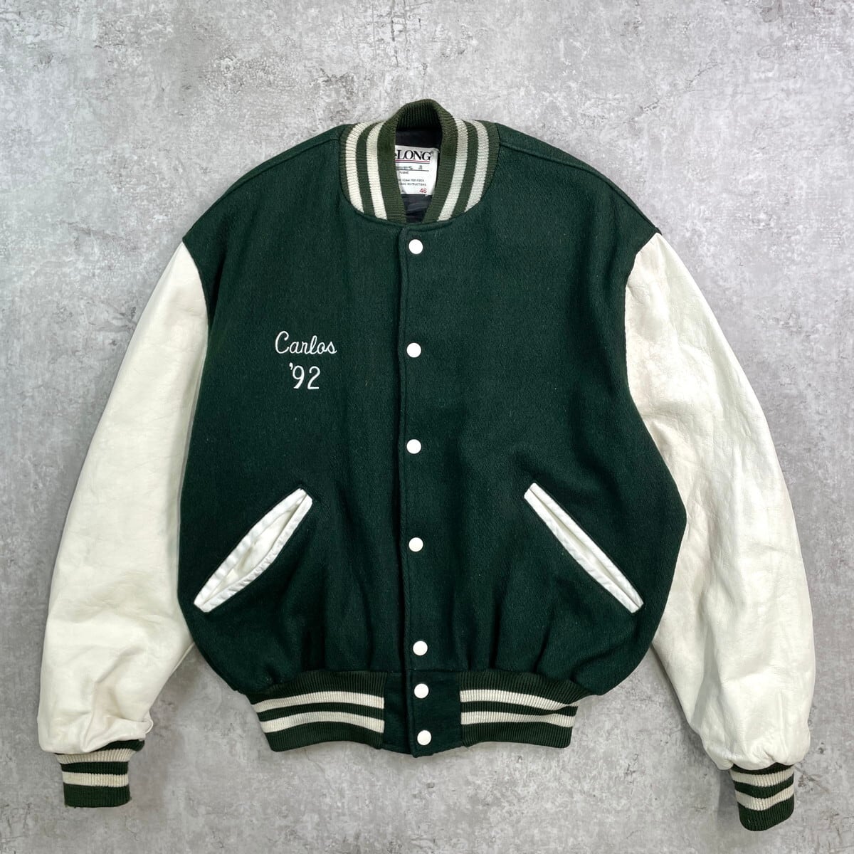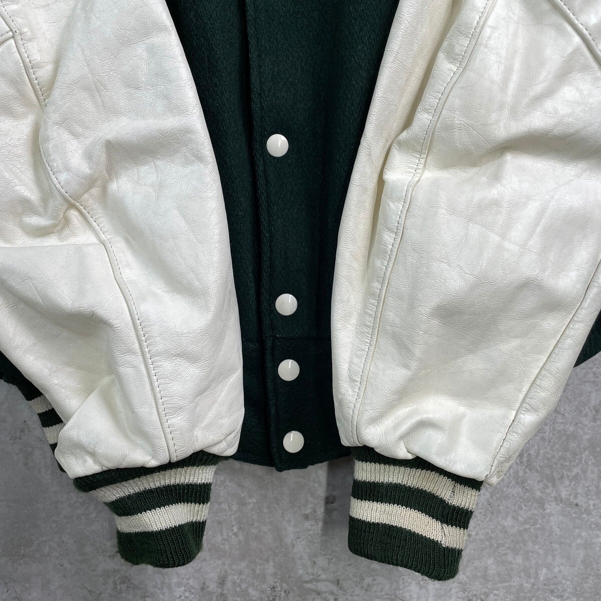 90年代 USA製 DeLONG デロング ウールスタジャン ネーム刺繍 メンズ2XL相当 古着 90s VINTAGE ヴィンテージ アメカジ ビッグサイズ 大きいサイズ 深緑色【ブルゾン・ジャケット】/グリーン