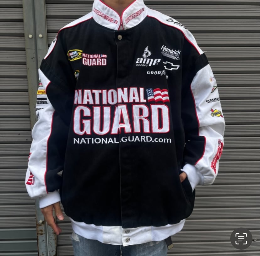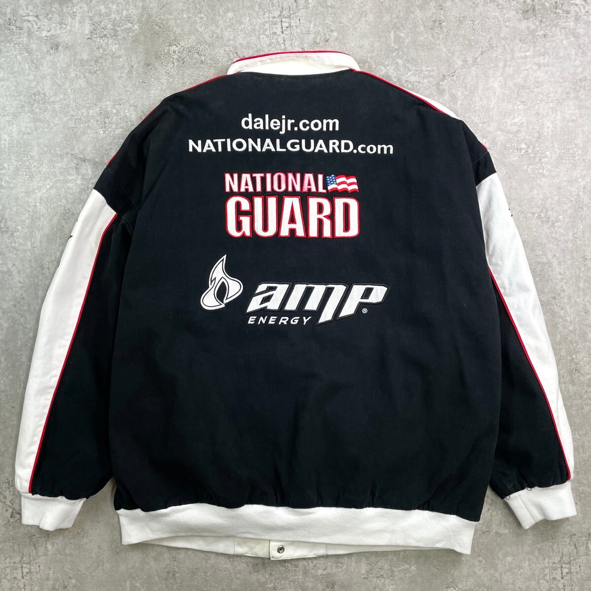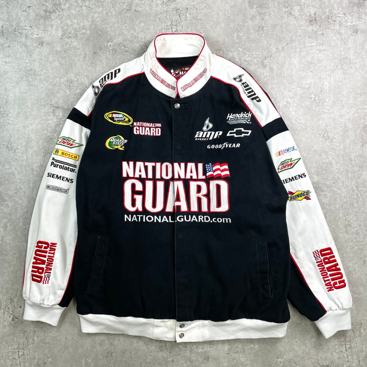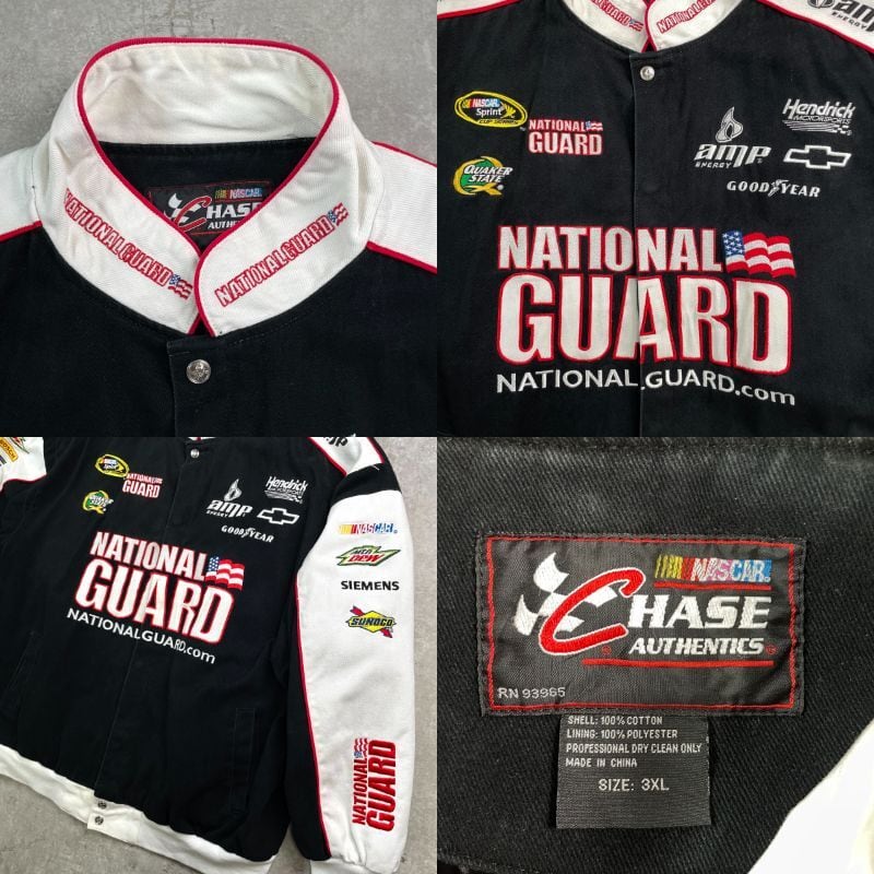 NASCAR CHASE AUTHENTICS 企業ロゴ刺繍 レーシングジャケット メンズ3XL 古着 NATIONAL GUARD カーレース モーターサイクル スナップボタン ビッグサイズ 大きいサイズ 黒色【レーシングジャケット】/ブラック