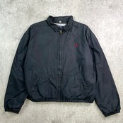 80年代 USA製 Polo by Ralph Lauren ポロバイラルフローレン スイングトップ チンスト付き 短丈 メンズXL 古着 80s VINTAGE ヴィンテージ アメカジ フリースライナー 黒色【ブルゾン・ジャケット】/ブラック