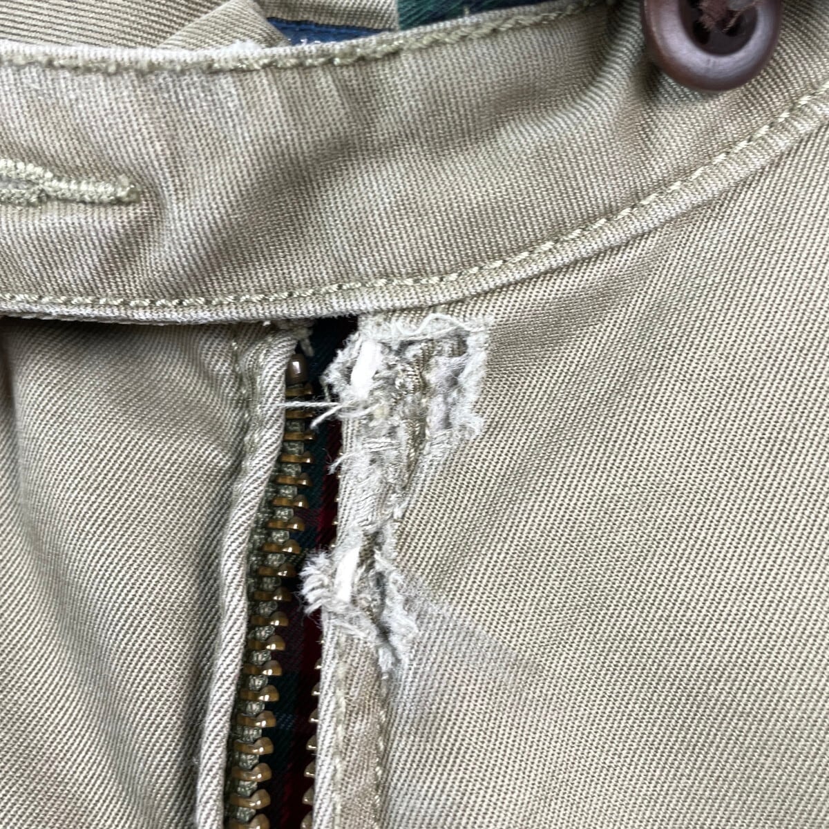【状態】チンスト付近、左脇部分、裏地にダメージがあります。