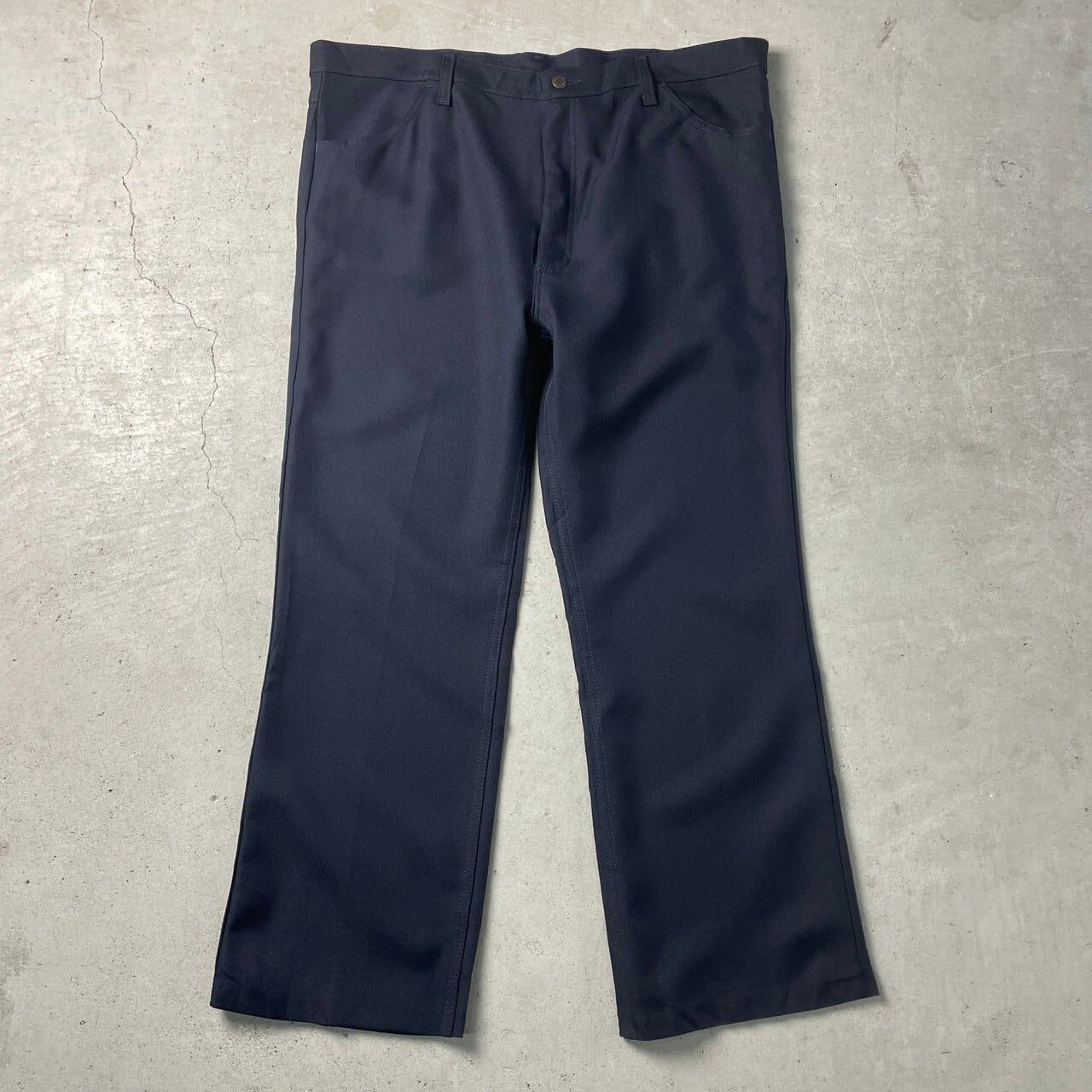 ■90~00年代 Wrangler ラングラー スラックスパンツ ランチャードレスパンツ W42 古着 90s 00s ヴィンテージ VINTAGE フレアパンツ ポリパン ネイビー 紺色【スラックス,スタプレ】/ネイビー