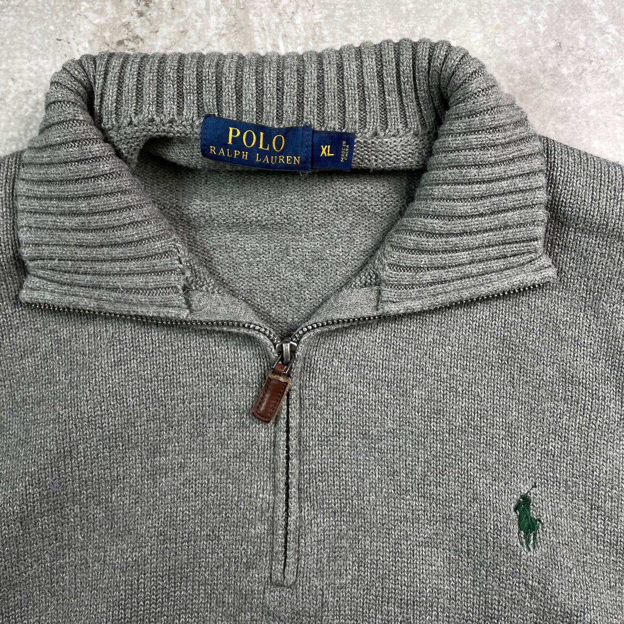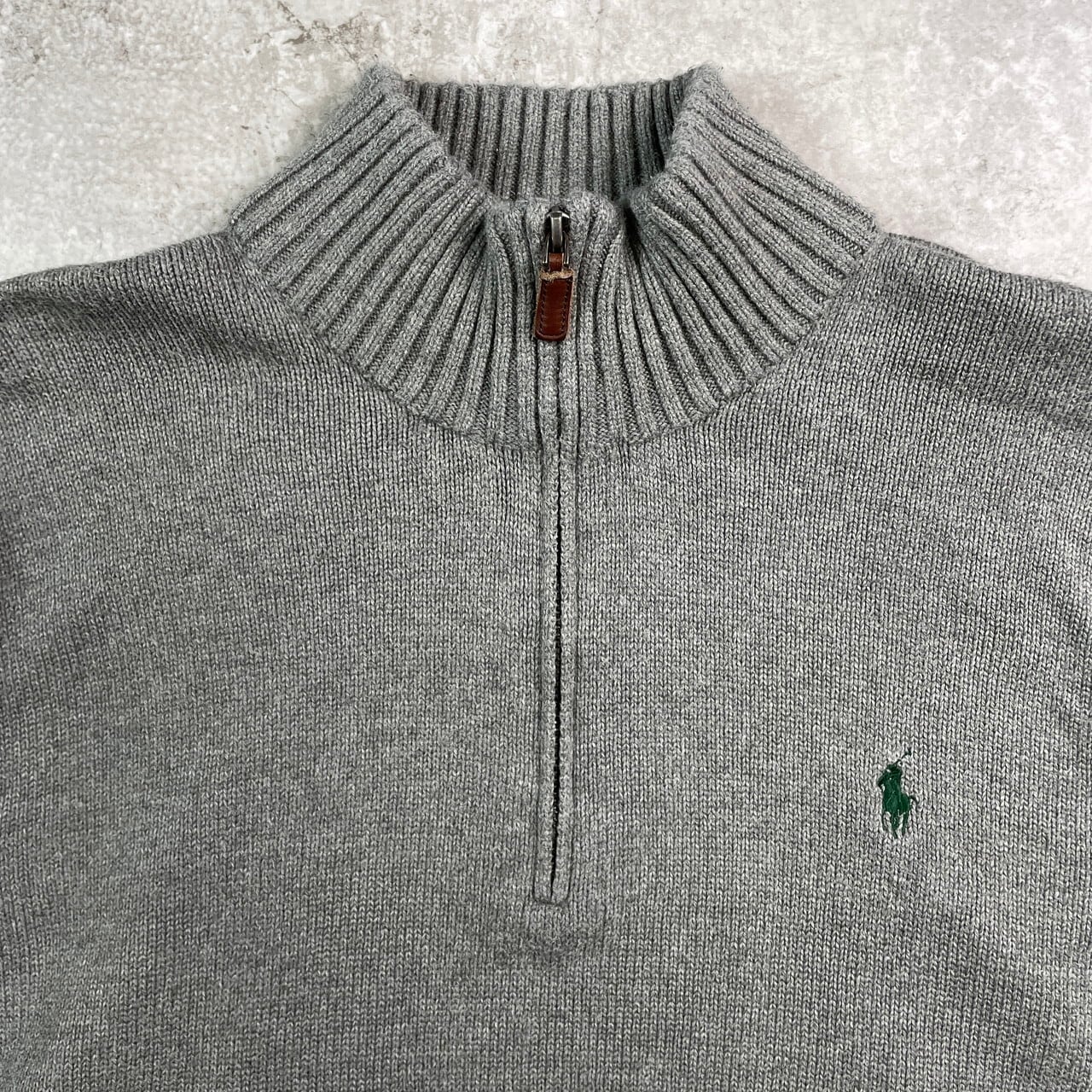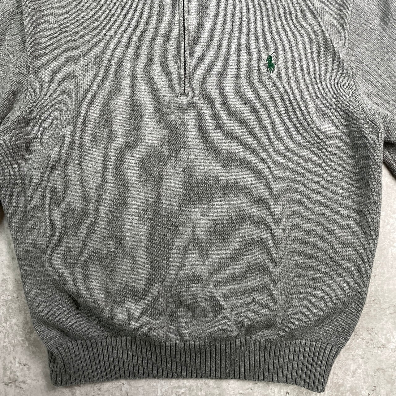 ■POLO RALPH LAUREN ポロラルフローレン ハーフジップ コットンニットセーター メンズXL 古着 ワンポイントロゴ刺繡 ハイネック 【ニットセーター】/グレー