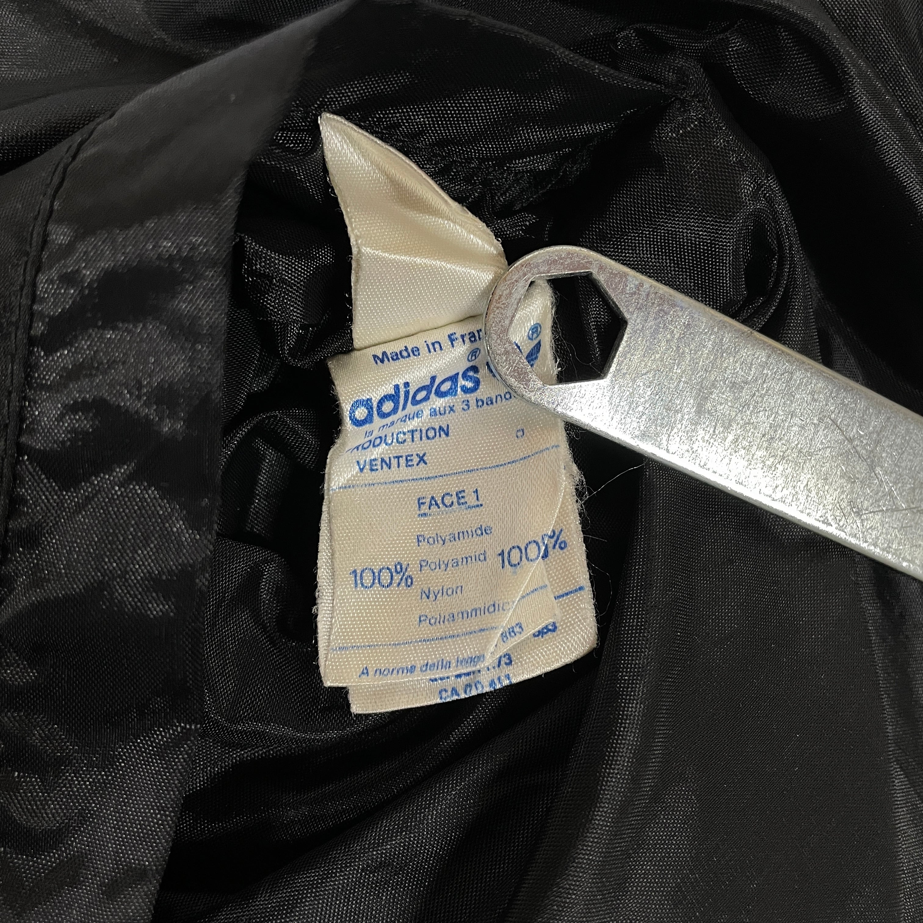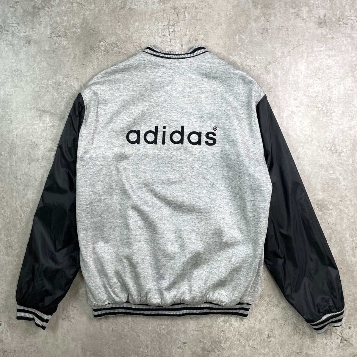 70〜80年代 フランス製 VENTEX 社製 adidas アディダス ナイロン×スウェット リバーシブル スタジャンメンズL相当 古着 70s 80s VINTAGE ヴィンテージ トレフォイルロゴ ブラック×グレー【ナイロンジャケット】/ブラック