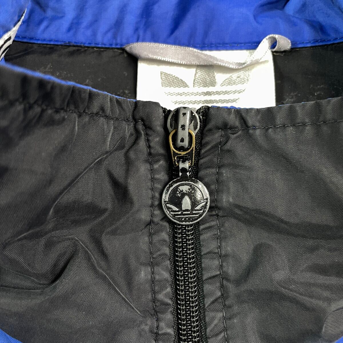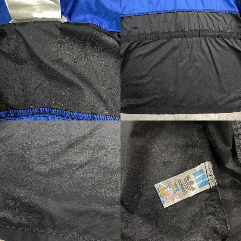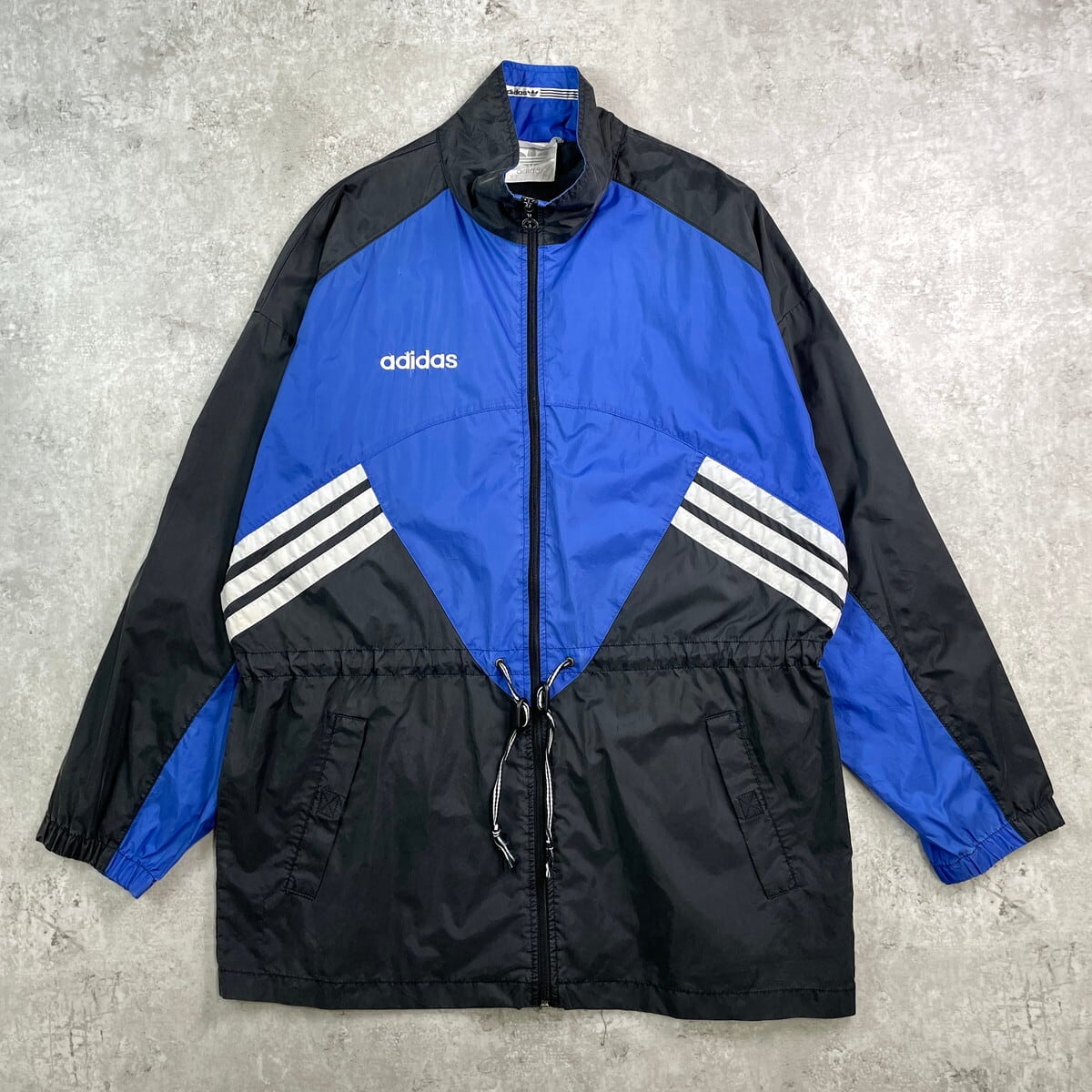 80年代 adidas アディダス ワンポイントロゴ刺繍 ナイロンジャケット メンズXL相当 古着 80s VINTAGE ヴィンテージ ドローコード付き バックプリント ブルー ブラック シルバー【ナイロンジャケット】/マルチカラー