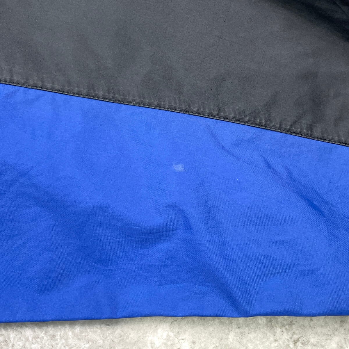 ■80年代 adidas アディダス ワンポイントロゴ刺繍 ナイロンジャケット メンズXL相当 古着 80s VINTAGE ヴィンテージ ドローコード付き バックプリント ブルー ブラック シルバー【ナイロンジャケット】/マルチカラー