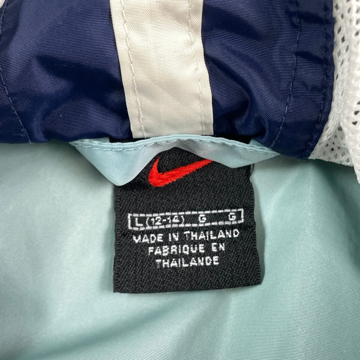 ■90年代 NIKE ナイキ アノラックパーカー メンズL 古着 90s VINTAGE ヴィンテージ ワンポイントロゴ スウォッシュロゴ刺繍 ドローコード付き スカイブルー【ナイロンジャケット】/ライトブルー
