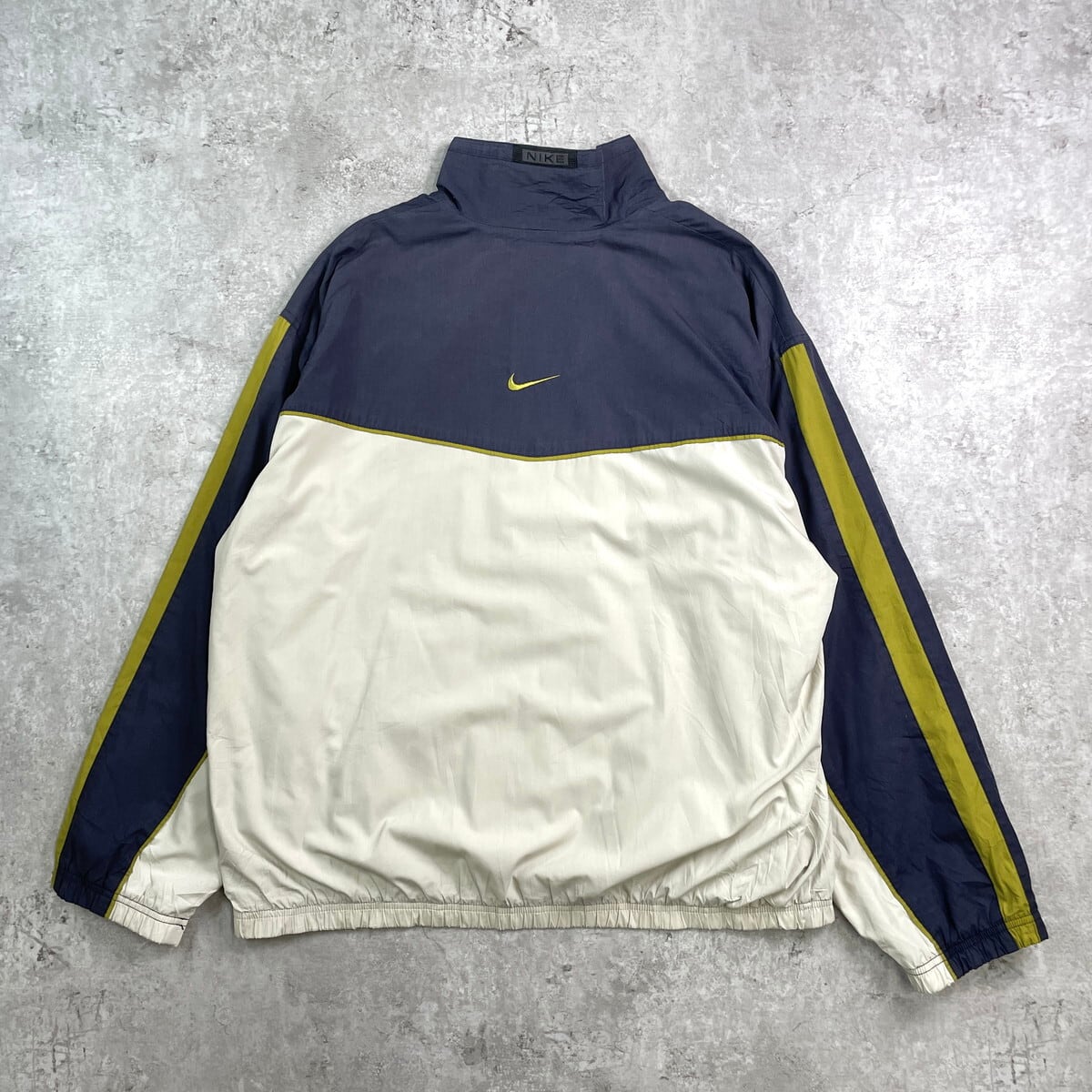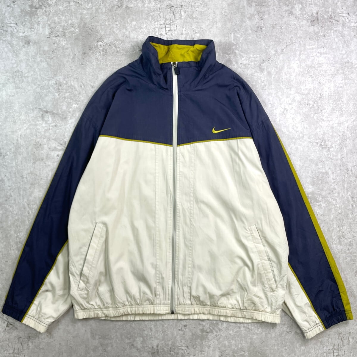 90年代 NIKE ナイキ スモールスウォッシュロゴ刺繍 トラックジャケット メンズXL相当 古着 90s VINTAGE ヴィンテージ ネイビー オリーブグリーン ベージュ【トラックジャケット】/マルチカラー