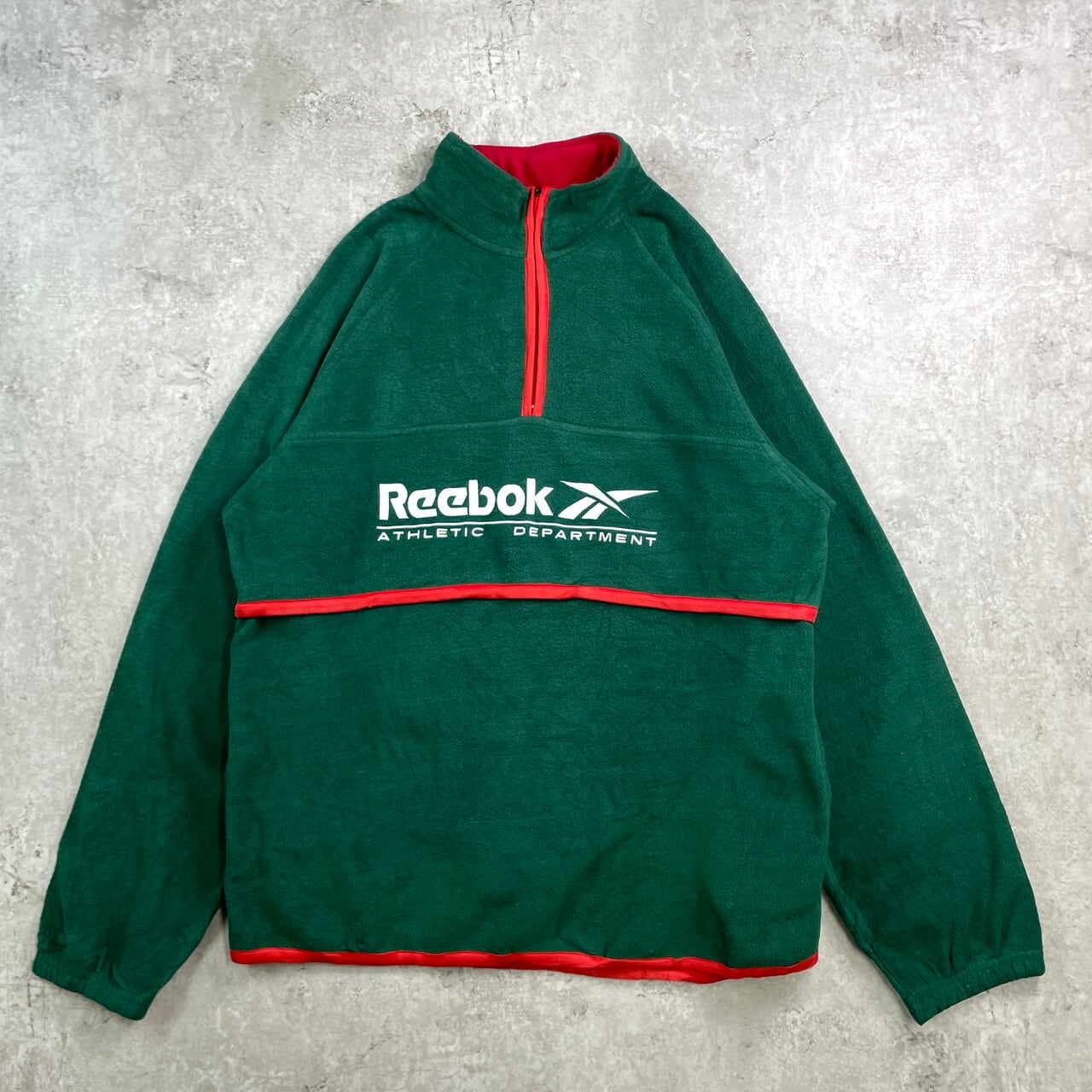 90年代 Reebok リーボック ビッグロゴ刺繍 ハーフジップ フリースプルオーバー メンズXL相当 古着 90s VINTAGE ヴィンテージ 緑【フリースジャケット】/グリーン