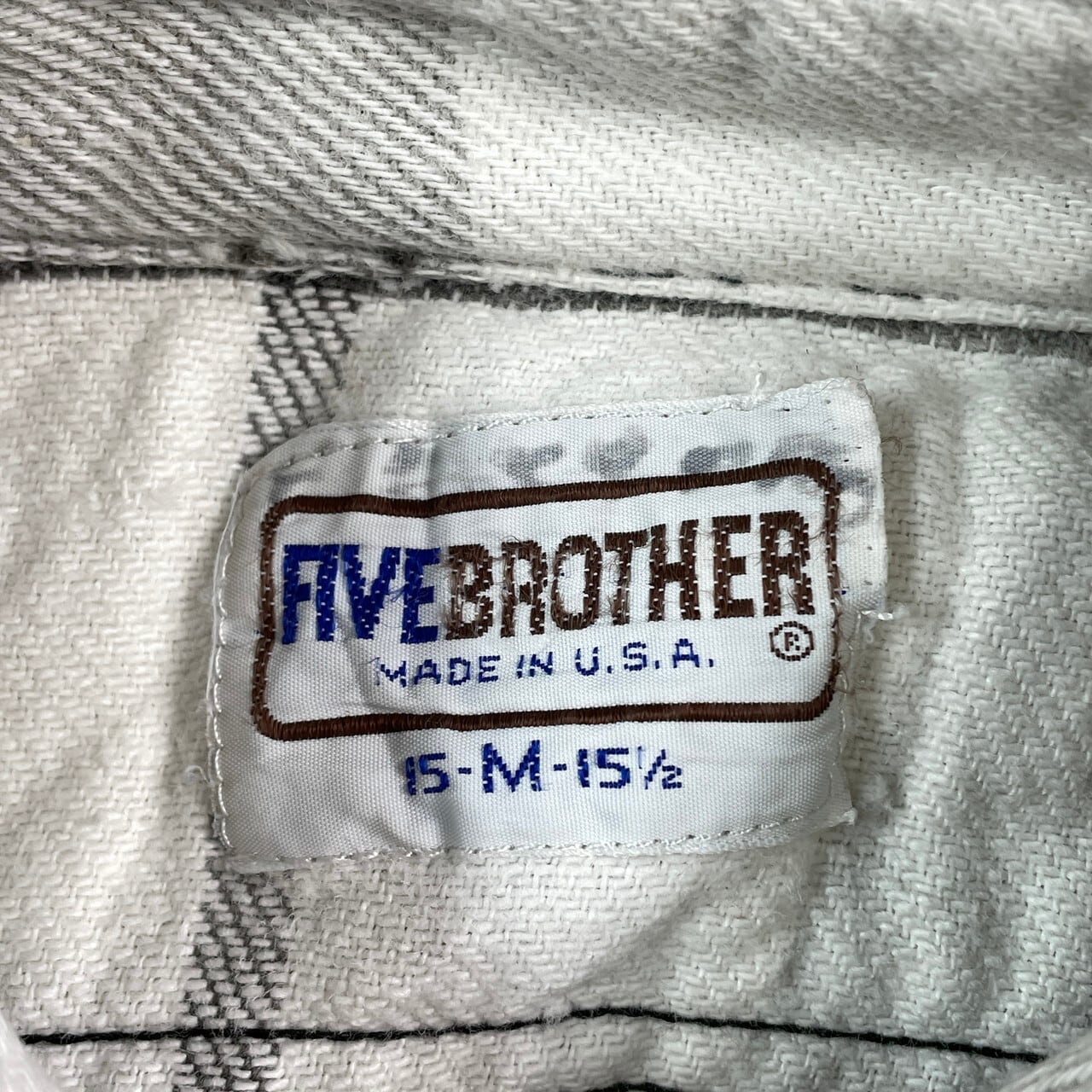 80年代 USA製 FIVE BROTHER ファイブブラザー ヘビーネルシャツ メンズM 古着 80s VINTAGE ヴィンテージ チェックシャツ フェードブラック ホワイト 墨黒 白【長袖シャツ】/マルチカラー