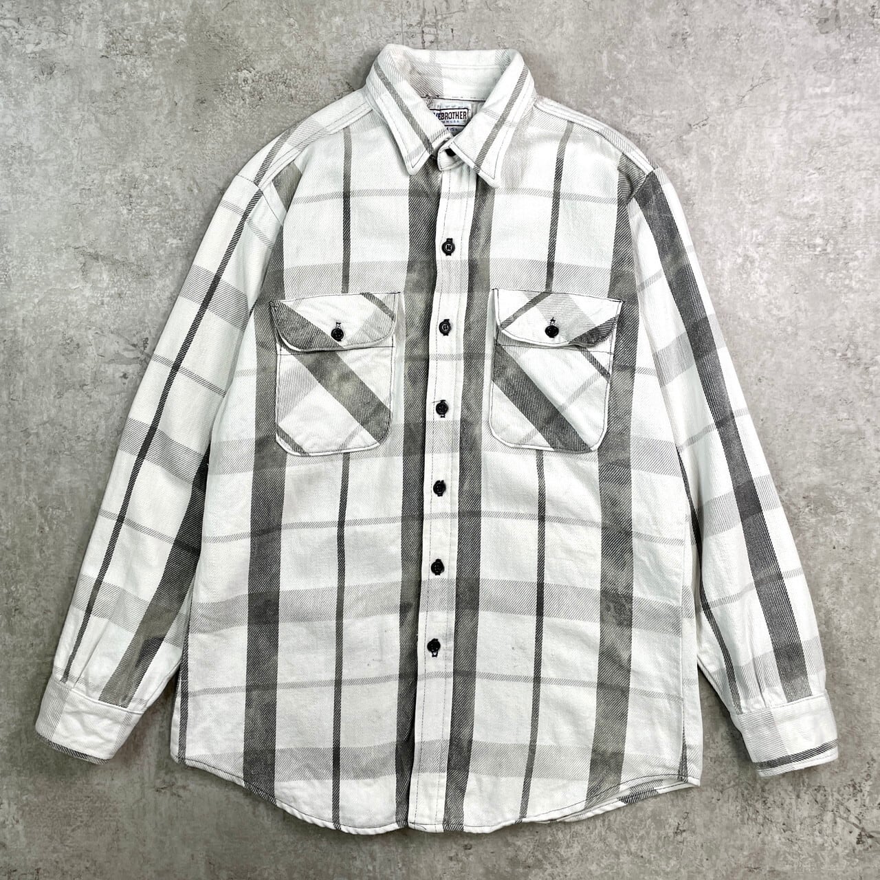 ■80年代 USA製 FIVE BROTHER ファイブブラザー ヘビーネルシャツ メンズM 古着 80s VINTAGE ヴィンテージ チェックシャツ フェードブラック ホワイト 墨黒 白【長袖シャツ】/マルチカラー