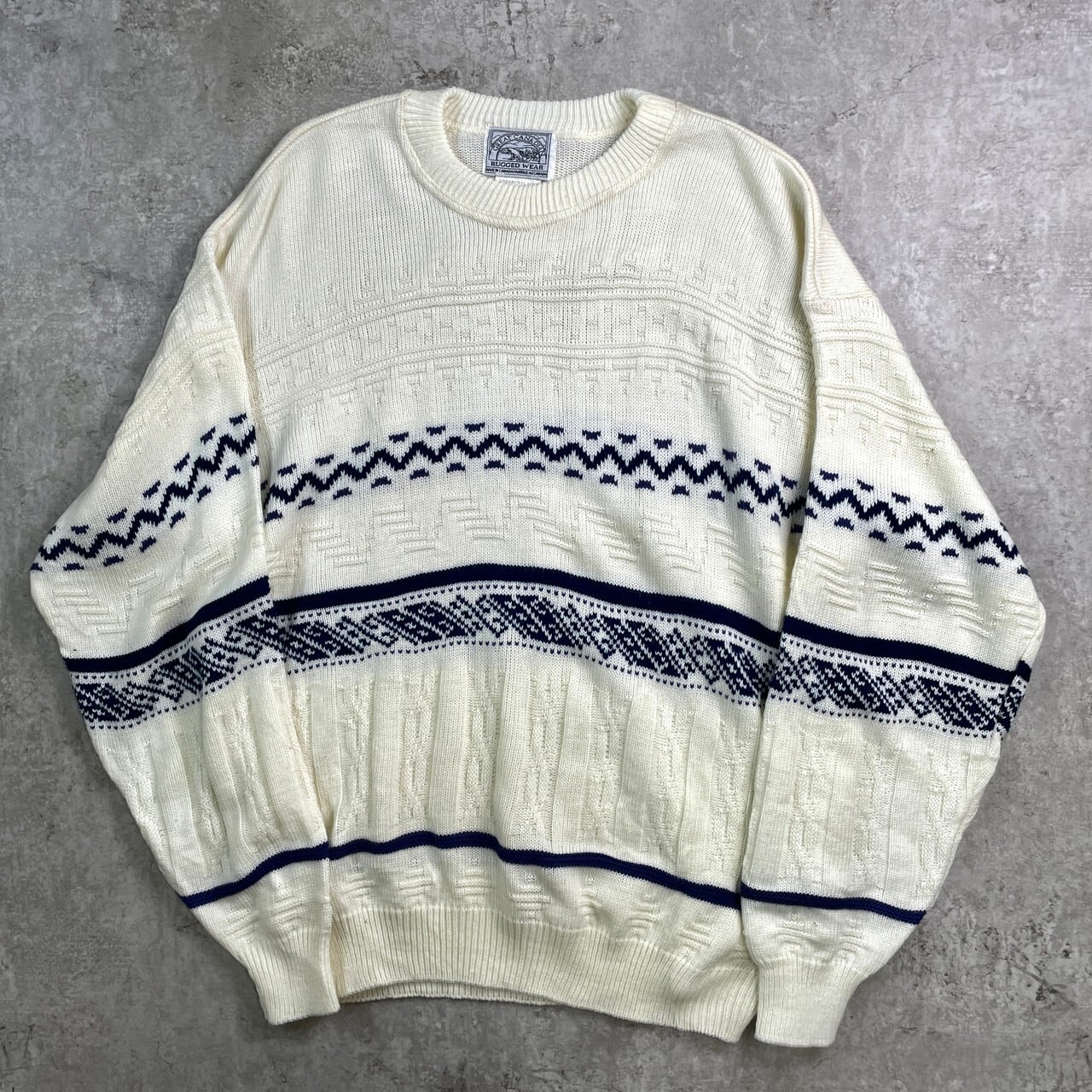 80年代 GREAT CANADIAN ノルディック柄 アクリルニットセーター メンズXL相当 古着 80s ヴィンテージ VINTAGE ネイティブ柄 白【ニットセーター】/ホワイト