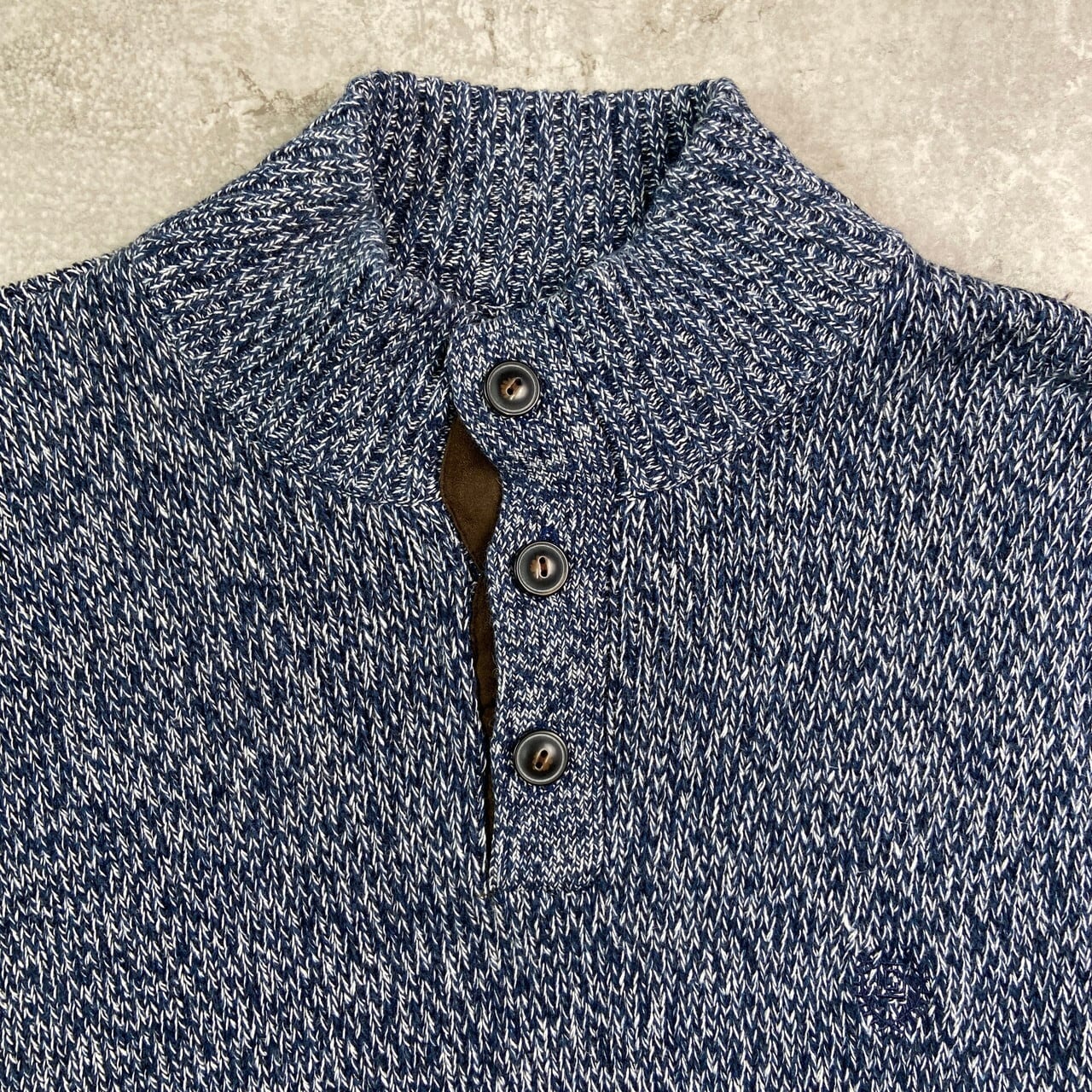 CHAPS チャップス ヘンリーネック コットンニットセーター メンズXL相当 古着 エルボーパッチ ネイビー ホワイト 紺色 白【ニットセーター】/マルチカラー