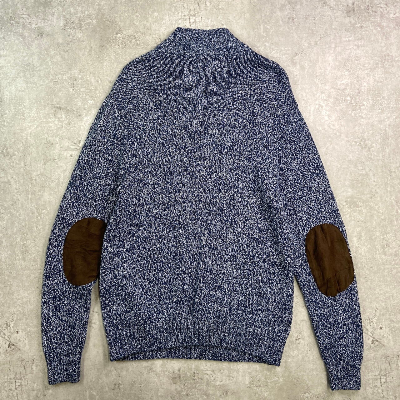 ■CHAPS チャップス ヘンリーネック コットンニットセーター メンズXL相当 古着 エルボーパッチ ネイビー ホワイト 紺色 白【ニットセーター】/マルチカラー