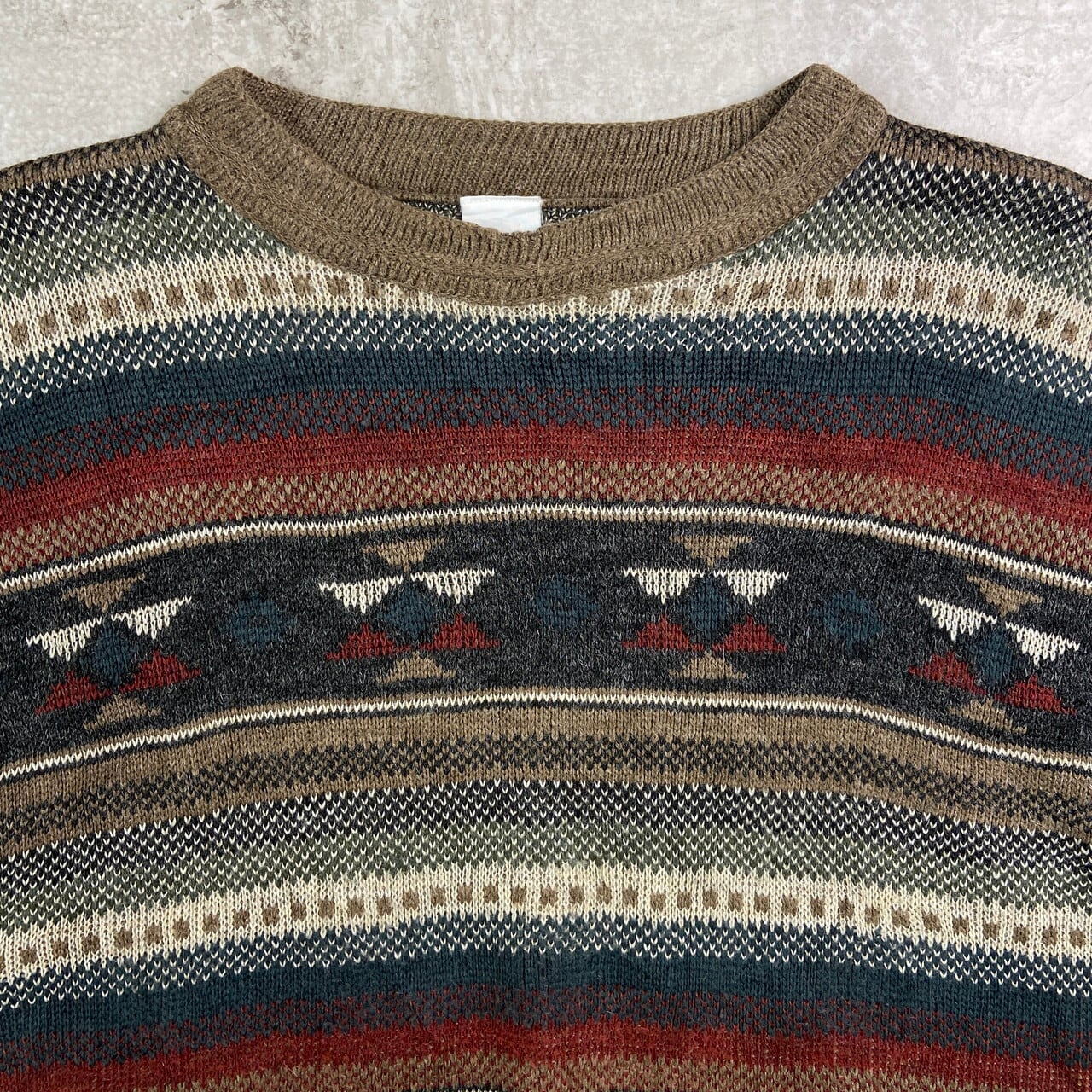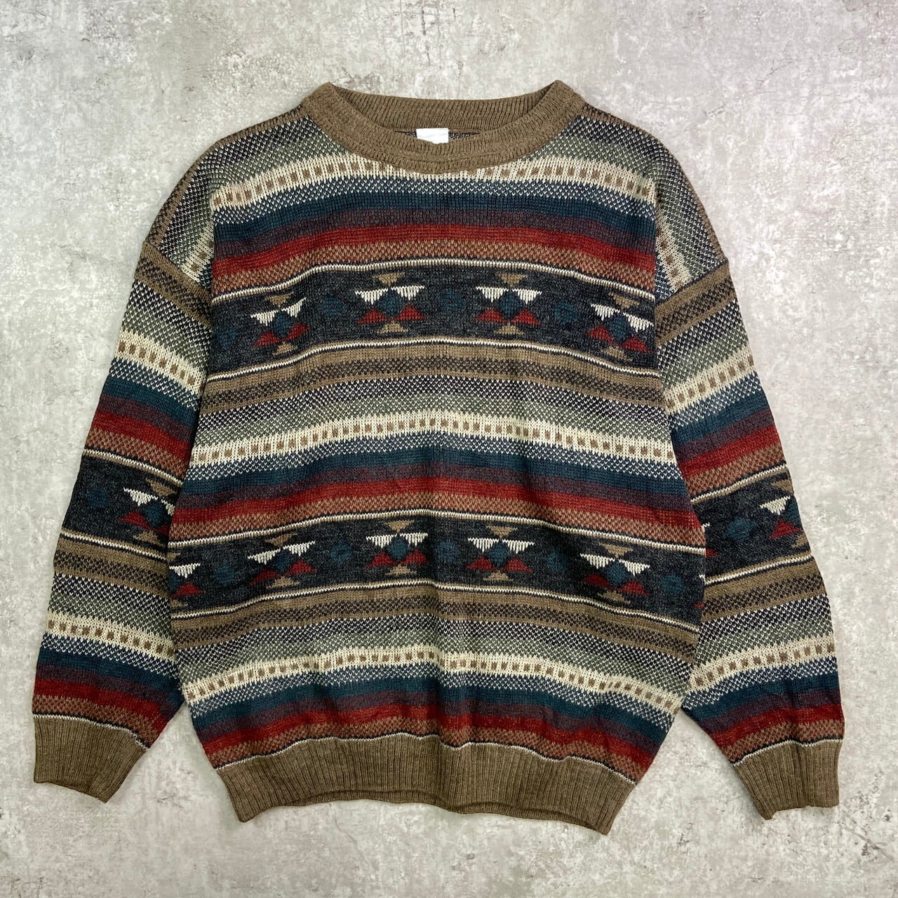 ■ヴィンテージ ネイティブボーダー ニットセーター メンズL相当 古着 VINTAGE【ニットセーター】/マルチカラー