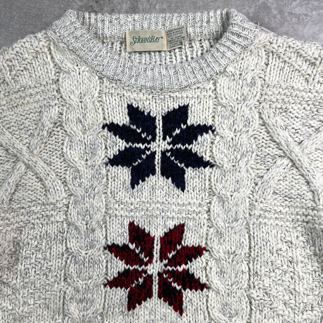 90年代 STJOHN'S BAY セントジョーンズベイ 雪柄 ローゲージ アクリルニットセーター メンズXL相当 古着 90s VINTAGE ヴィンテージ 白【ニットセーター】/ホワイト