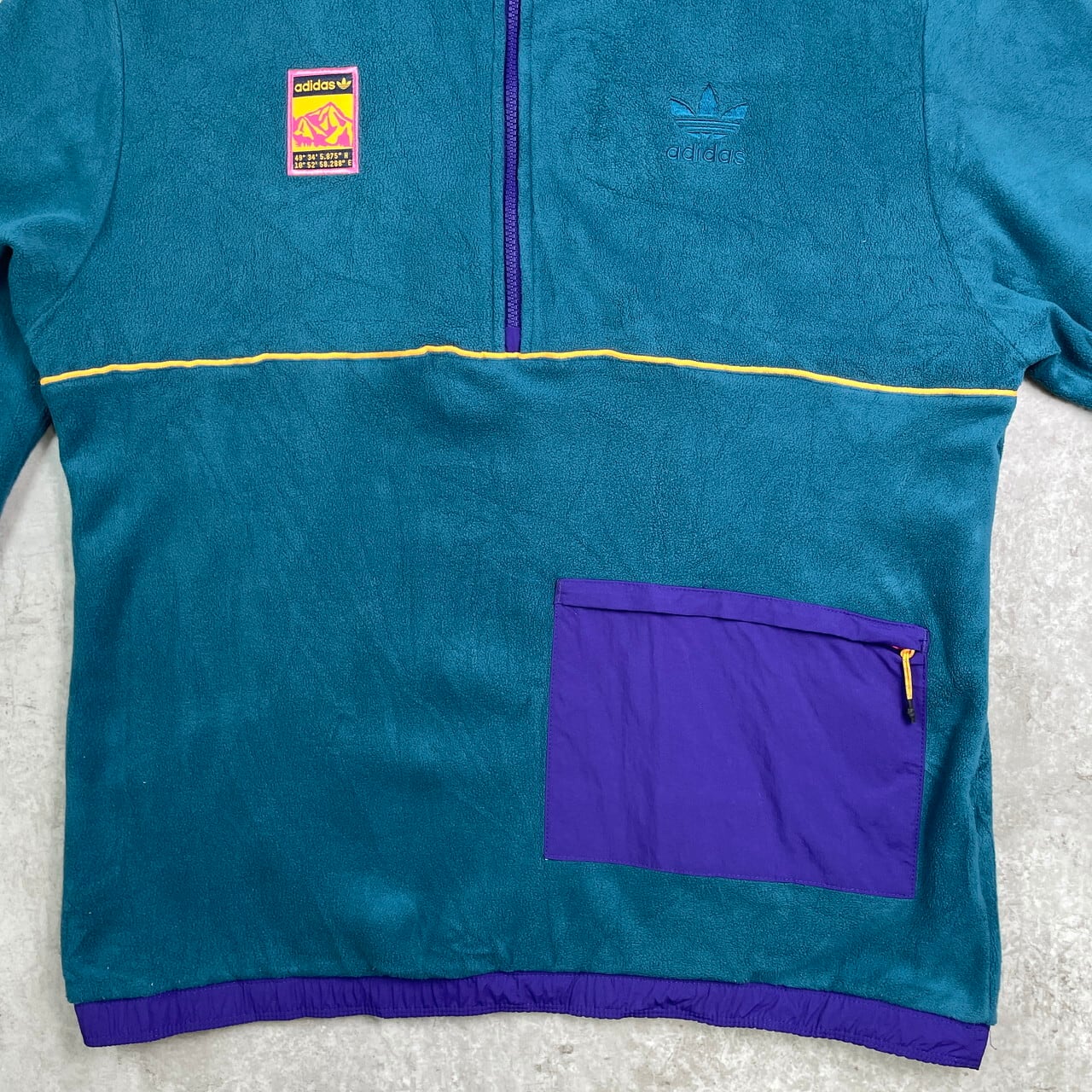 adidas originals アディダス オリジナルス ハーフジップ デザイン フリースプルオーバー メンズXL相当 古着 パープル 緑 紫【フリースジャケット】/グリーン