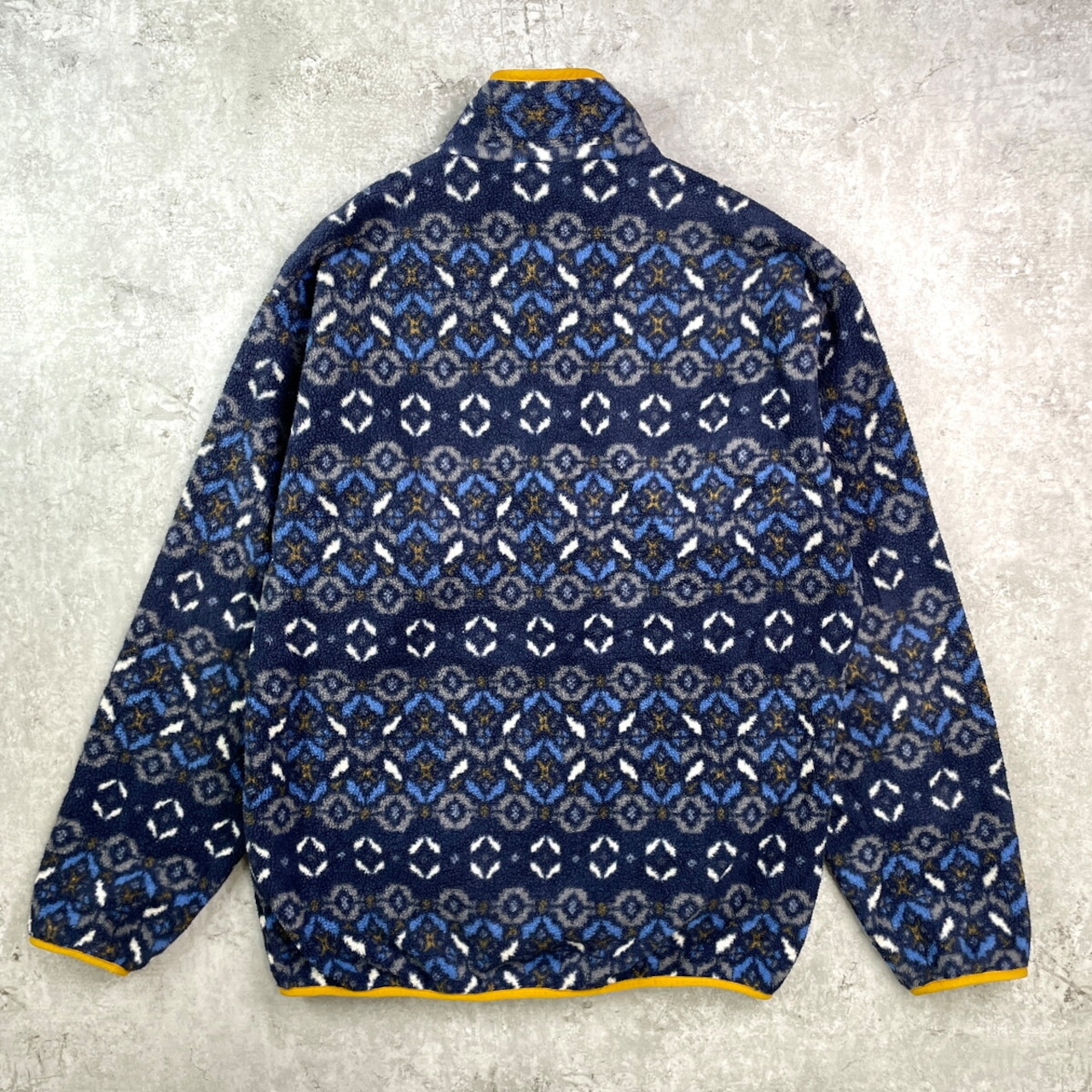 19年製 patagonia SYNCHILLA パタゴニア シンチラ フリースジャケット メンズM レディースL相当 古着 アウトドア スナップT 総柄【フリースジャケット】/ネイビー