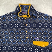 ■19年製 patagonia SYNCHILLA パタゴニア シンチラ フリースジャケット メンズM レディースL相当 古着 アウトドア スナップT 総柄【フリースジャケット】/ネイビー