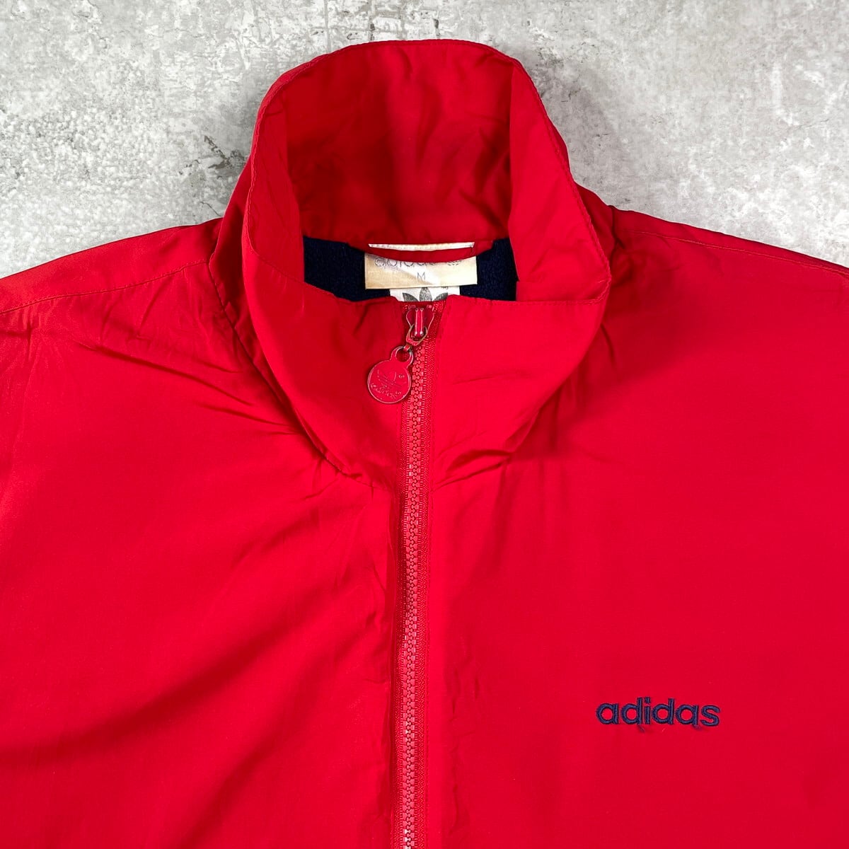 90年代 adidas アディダス 中綿入り フリースベスト メンズL相当 古着 90s ヴィンテージ VINTAGE ワンポイントロゴ刺繡 アウトドア 赤色 ネイビー【アウトドアジャケット】/レッド