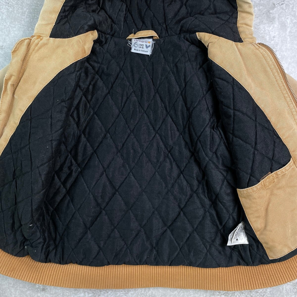 【Kids】Carhartt カーハート ダック地 アクティブジャケット ワークジャケット キッズ4-5歳相当 古着 子供服 襤褸 ボロ 雰囲気系 キルティングライナー アクティブパーカー ライトブラウン 茶色【ワークジャケット】/ブラウン
