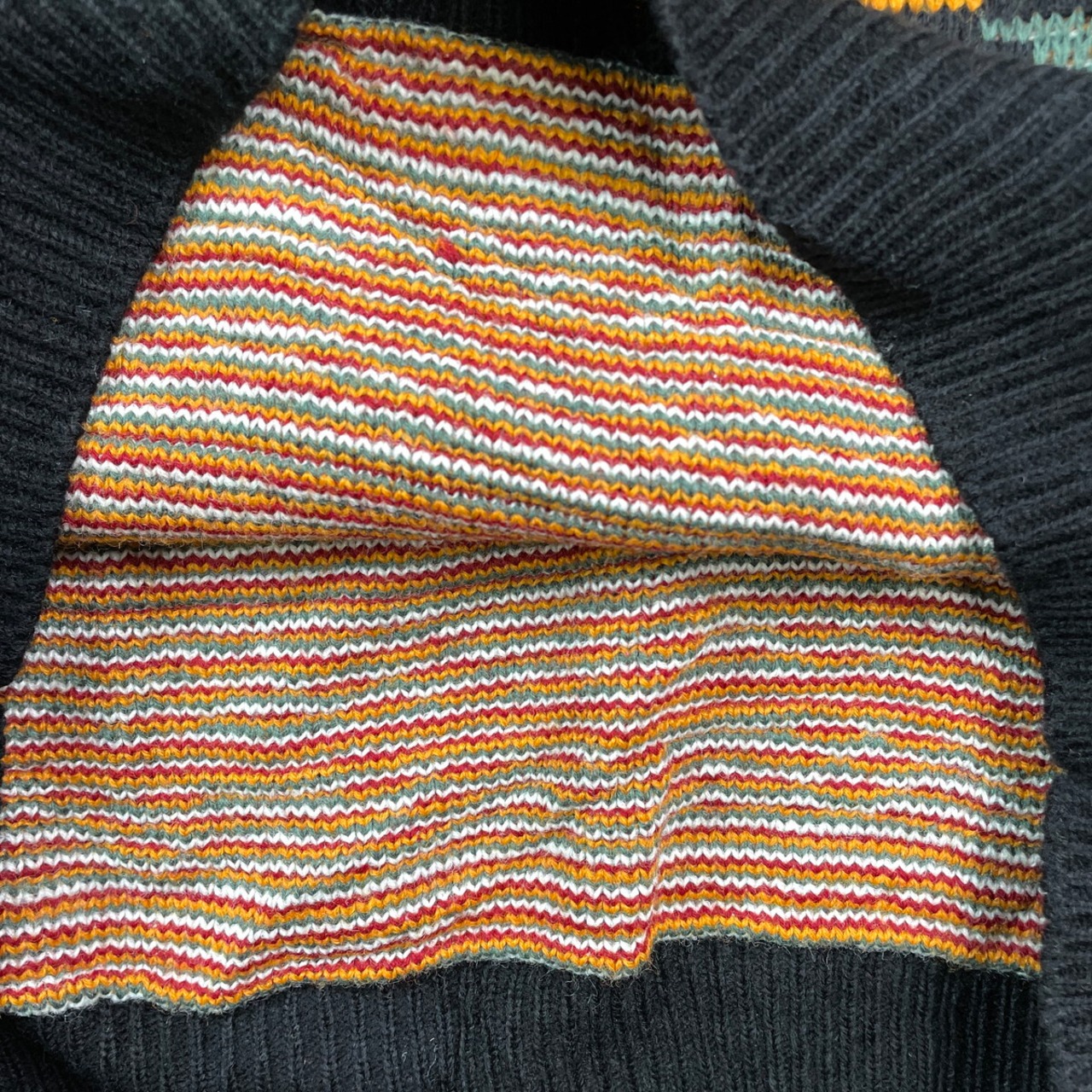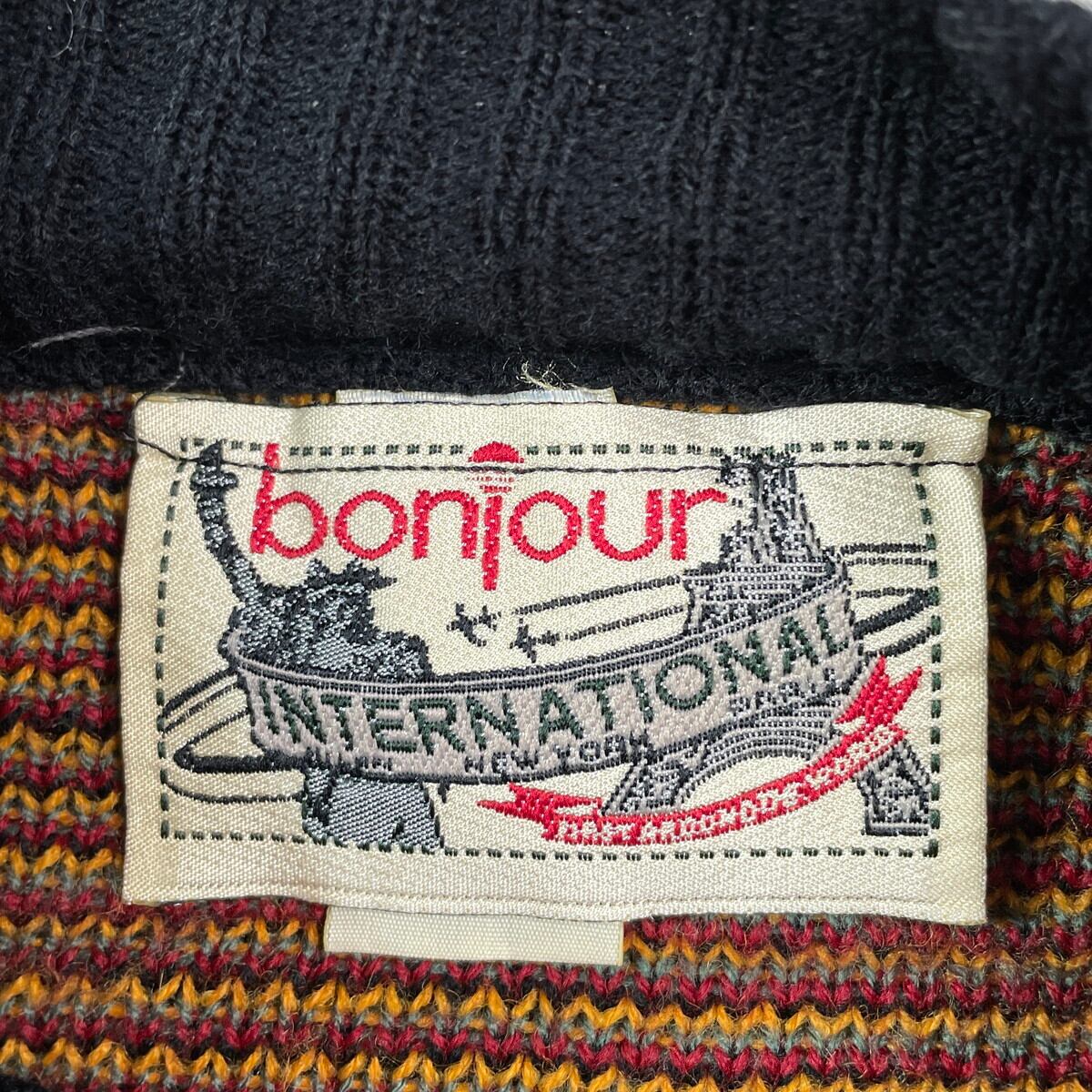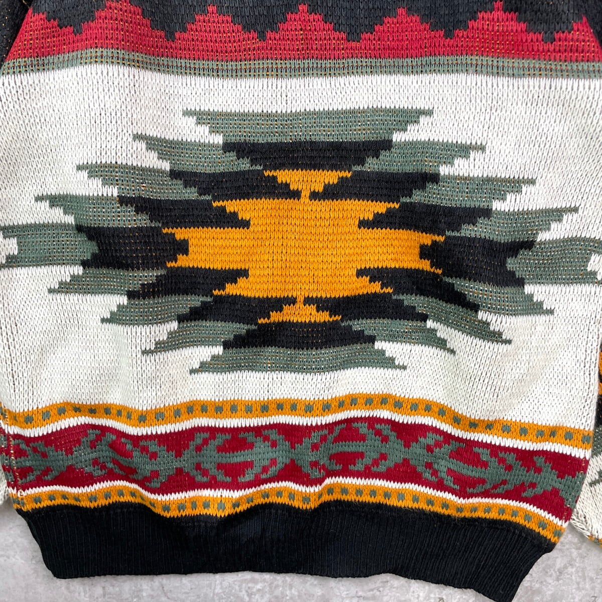 ■USA製 BONJOUR INTERNATIONAL アクリルニットセーター モックネック メンズM 古着 ネイティブ柄 黒色【ニットセーター】/ブラック