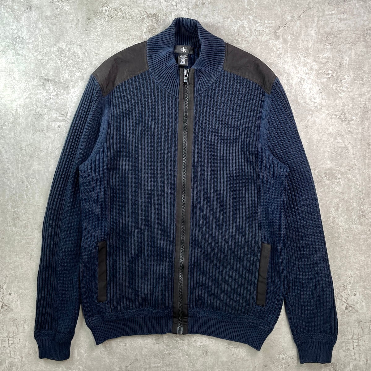 90~00年代 Calvin Klein カルバンクライン ドライバーズニット セーター メンズXL 古着 90s 00s Y2K VINTAGE ヴィンテージ CK フルジップ ラグランスリーブ 紺色【ニットセーター】/ネイビー