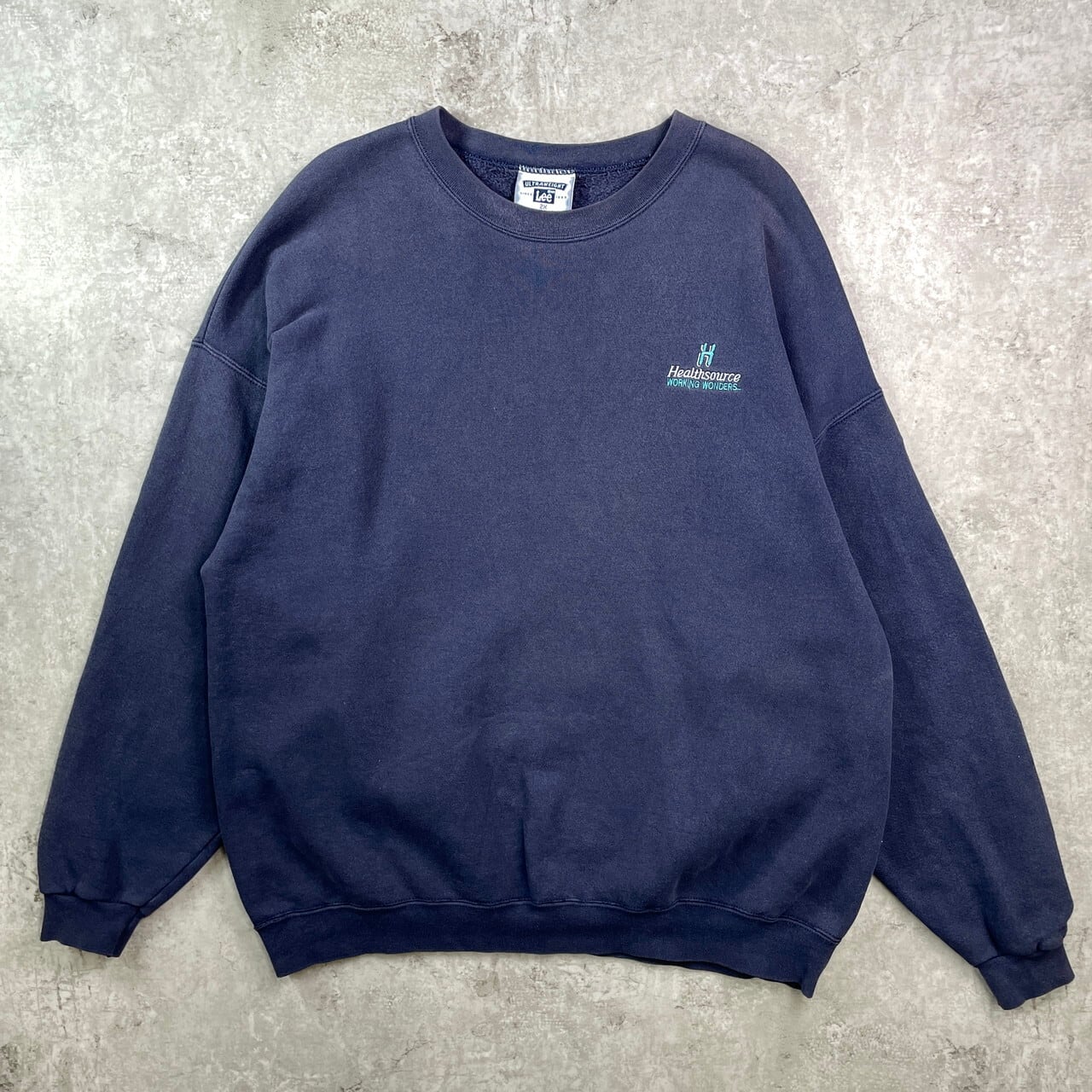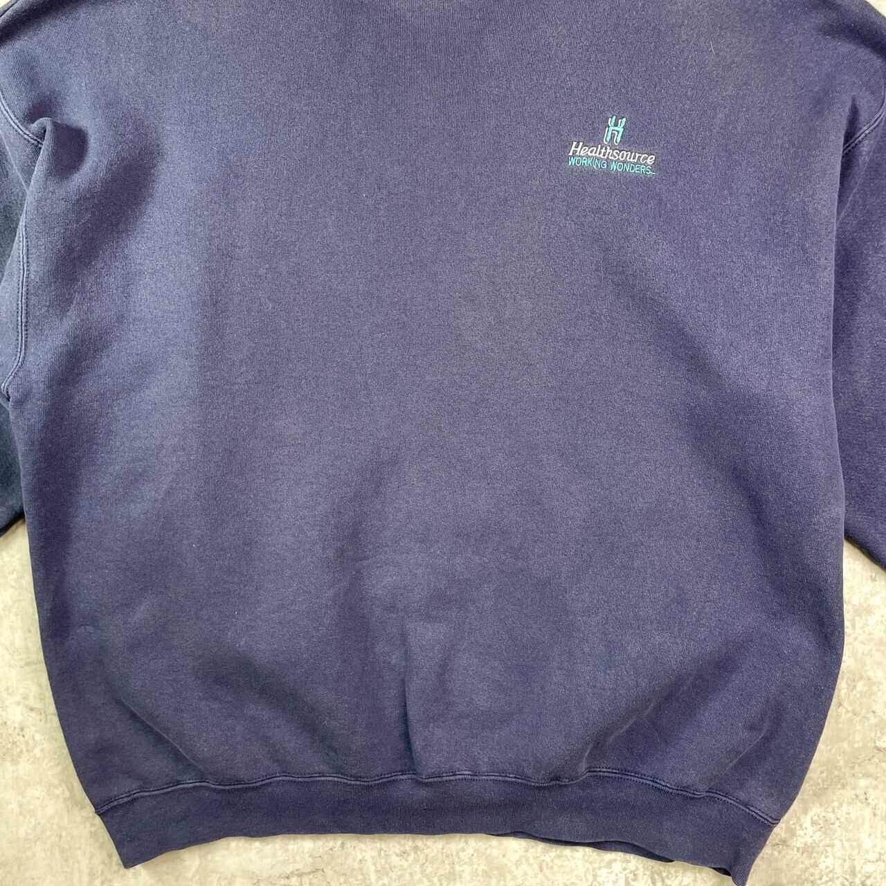90年代 Lee リー ワンポイント企業ロゴ刺繍 スウェットシャツ メンズ2XL 古着 90s ヴィンテージ VINTAGE トレーナー フェードネイビー 紺色 ビッグサイズ 大きいサイズ【スウェット】/ネイビー
