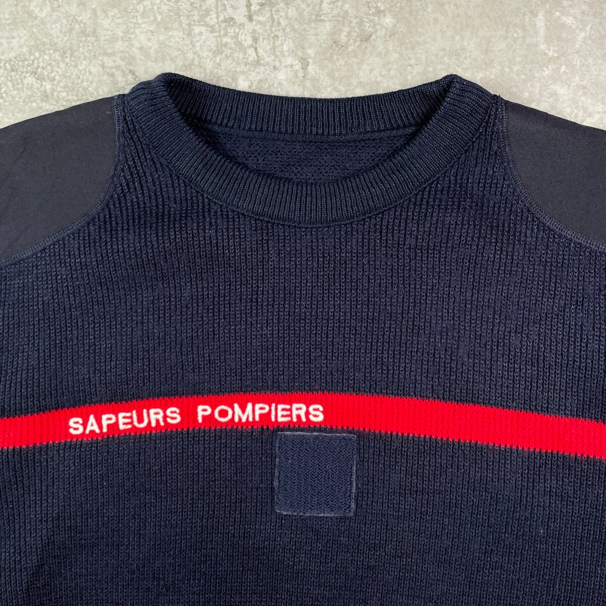 SAPEURS POMPIERS フランス消防隊 ユーロ ロゴ刺繍 ニットセーター メンズL相当 古着 ファイアーマンニット 紺色 レッド【ニットセーター】/ネイビー