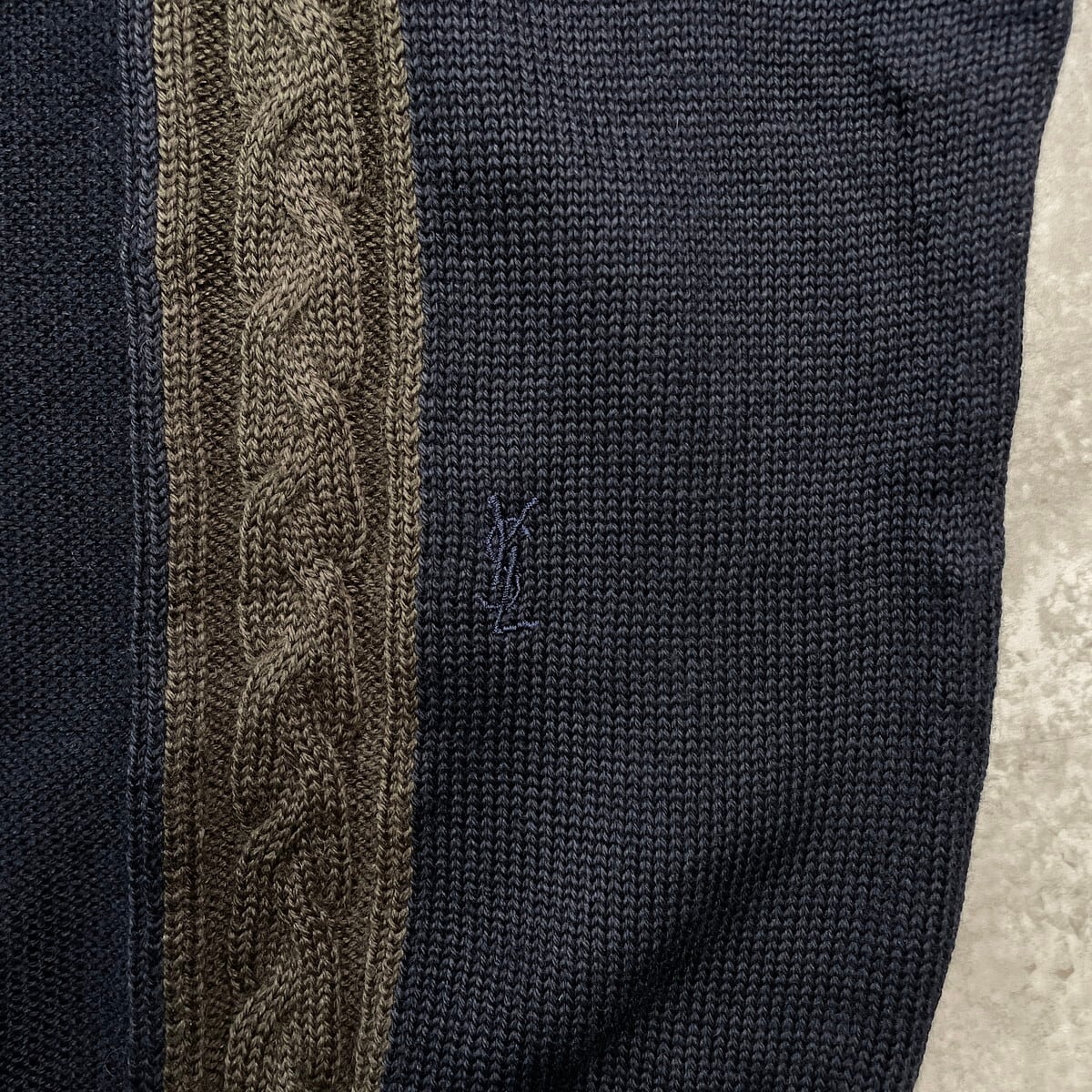YVES SAINT LAURENT POUR HOMM イヴサンローラン ウール×アクリル ニットセーター メンズXL相当 古着 YVES SAINT LAURENT POUR HOMME YSL ワンポイントロゴ刺繍 ダークネイビー カーキグリーン【ニットセーター】/ネイビー