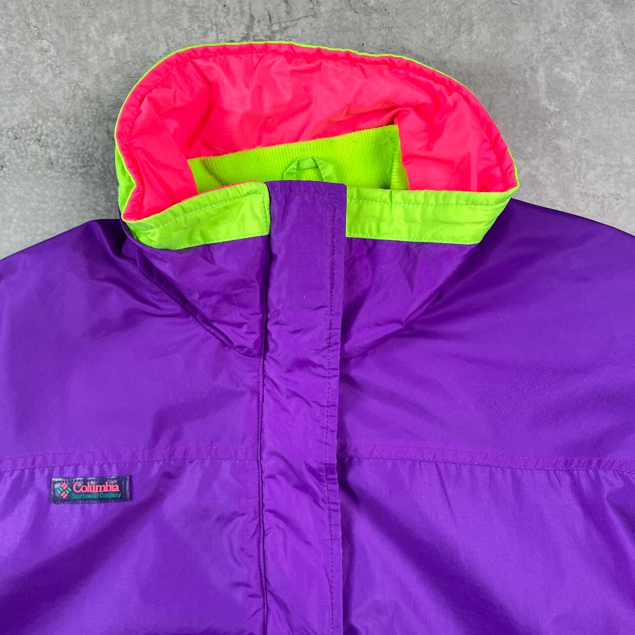 80年代 Columbia コロンビア Bugaboo アウトドアジャケット レディースXL メンズL相当 古着 80s ヴィンテージ VINTAGE パープル 蛍光グリーン ピンク【アウトドアジャケット】/マルチカラー