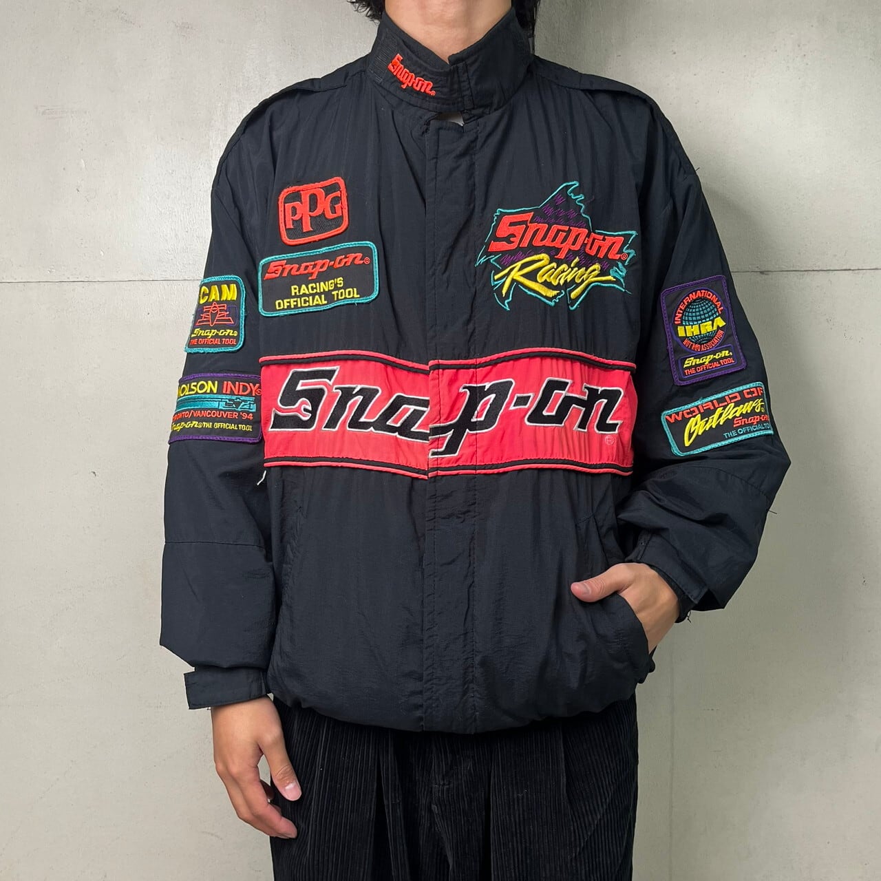 90年代 Snap-on スナップオン 企業ロゴワッペン ナイロン レーシングジャケット メンズL相当 90s VINTAGE ヴィンテージ 黒【レーシングジャケット】/ブラック