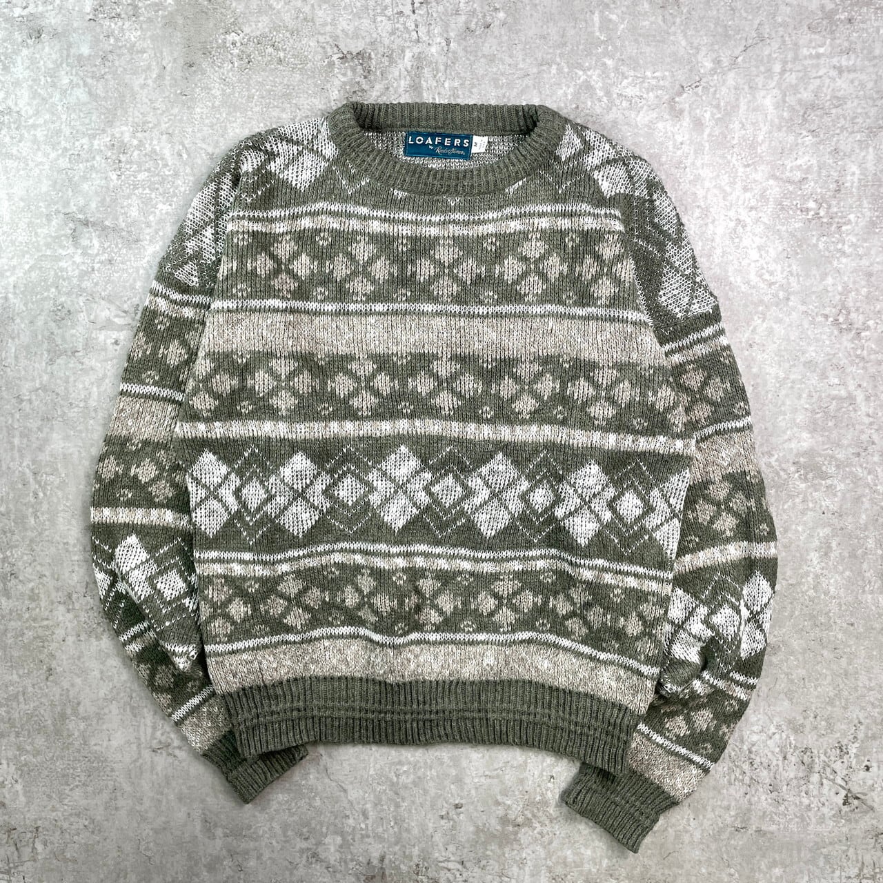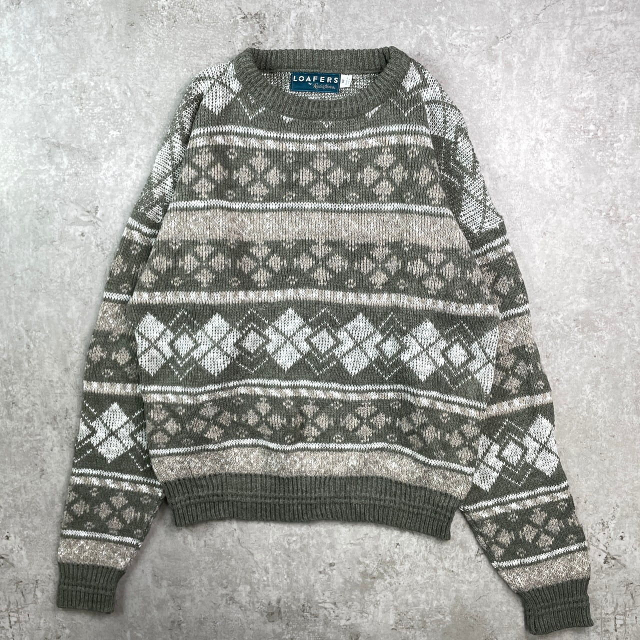 90年代 USA製 LOAFERS ノルディック柄 ニットセーター メンズL相当 古着 90s ヴィンテージ VINTAGE 総柄【ニットセーター】/マルチカラー