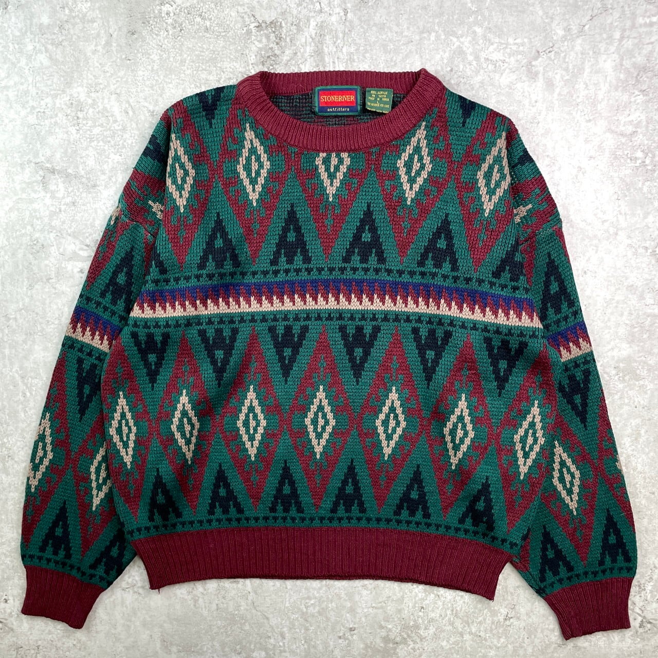 ■90年代 STONERIVER ネイティブ柄 アクリルニットセーター メンズL 古着 90s ヴィンテージ VINTAGE 総柄【ニットセーター】/マルチカラー