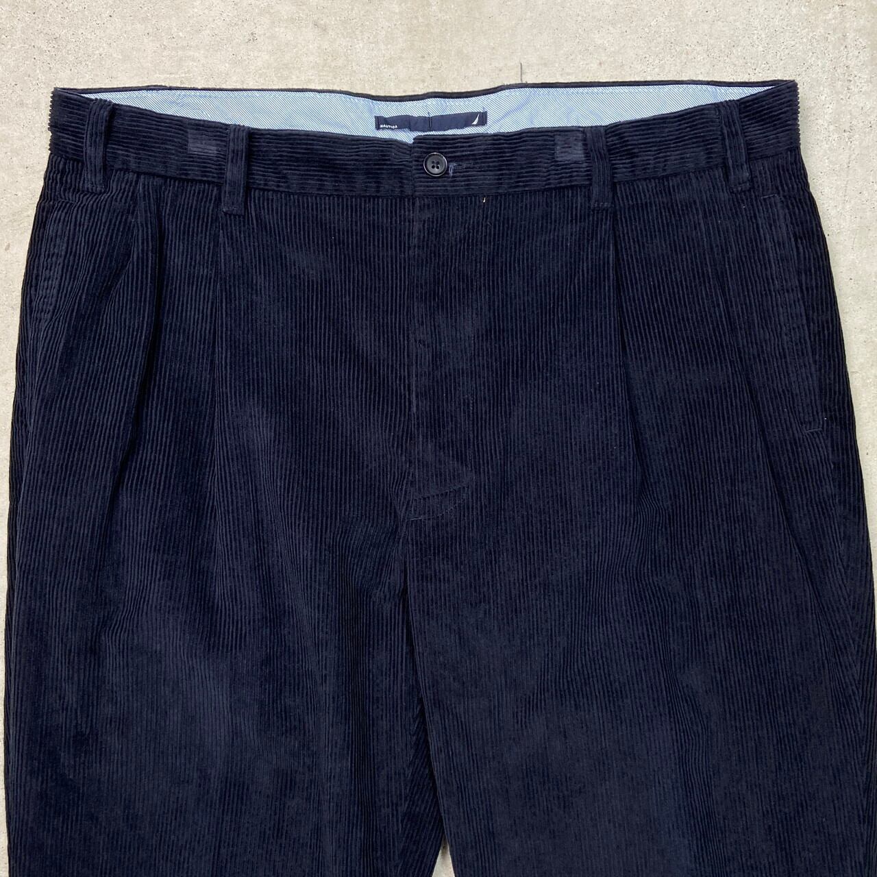 NAUTICA ノーティカ 2タック ワイドテーパード コーデュロイパンツ メンズW40 古着 ビッグサイズ 大きいサイズ ダークネイビー 紺色【コーデュロイパンツ】/ネイビー