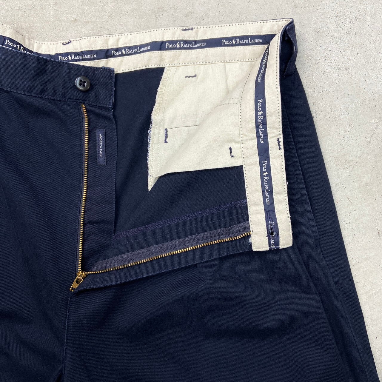 ■90年代 USA製 Polo Ralph Lauren オールドラルフローレン 2タック ワイドテーパード チノパンツ メンズW36 古着 ポロチノ ANDREW PANT 90s VINTAGE ヴィンテージ 紺色【ロングパンツ】/ネイビー