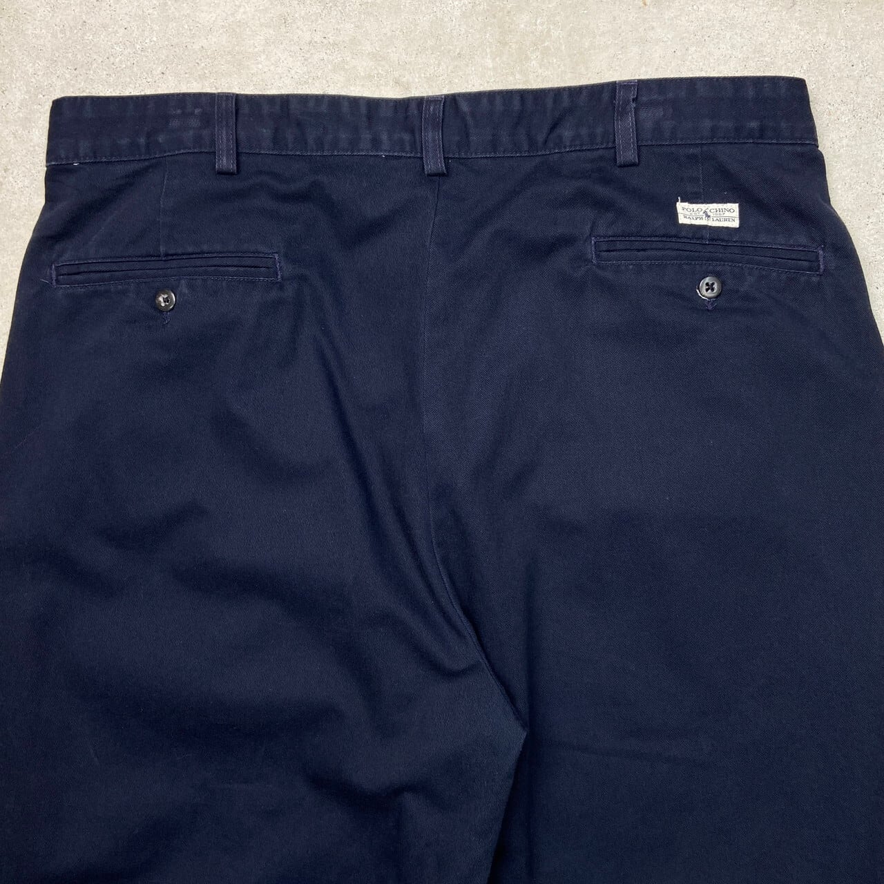 90年代 USA製 Polo Ralph Lauren オールドラルフローレン 2タック ワイドテーパード チノパンツ メンズW36 古着 ポロチノ ANDREW PANT 90s VINTAGE ヴィンテージ 紺色【ロングパンツ】/ネイビー