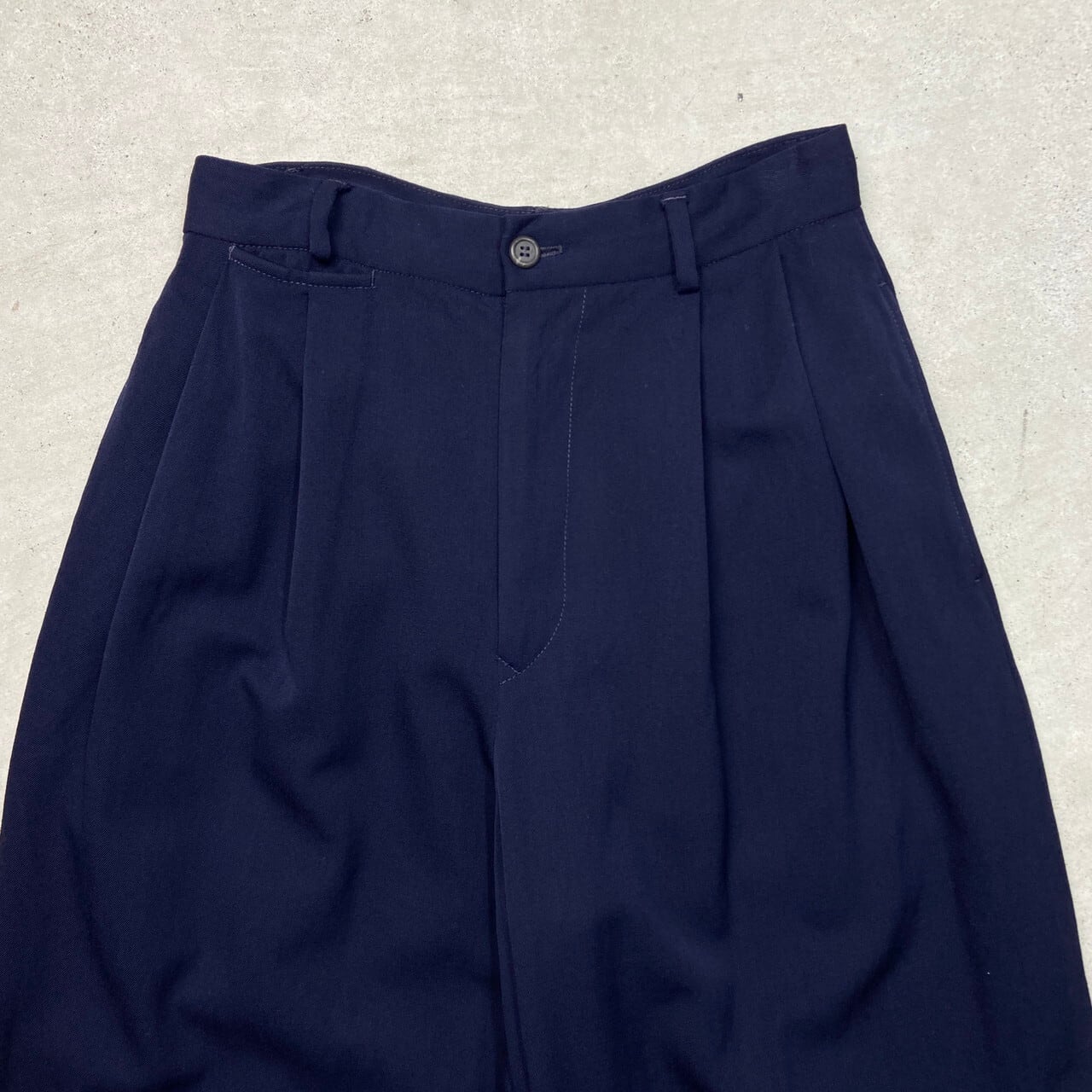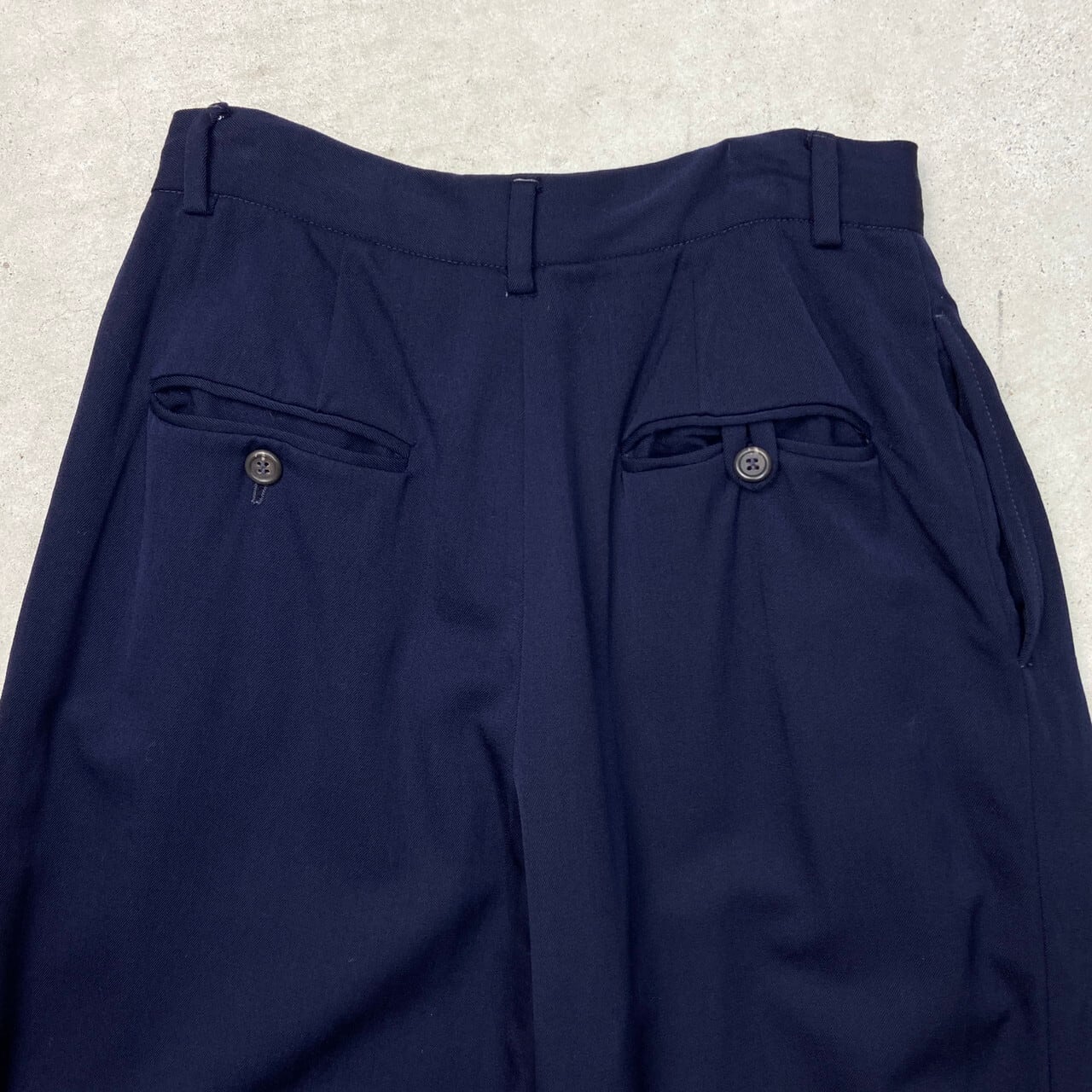 ■80~90年代 イタリア製 Ralph Lauren オールドラルフローレン 2タック ワイドストレート ギャバジンウールスラックス レディースW26 古着 80s 90s VINTAGE ヴィンテージ ウールパンツ トラウザー ウォッチポケット ダークネイビー 紺色【ロングパンツ】/ネイビー