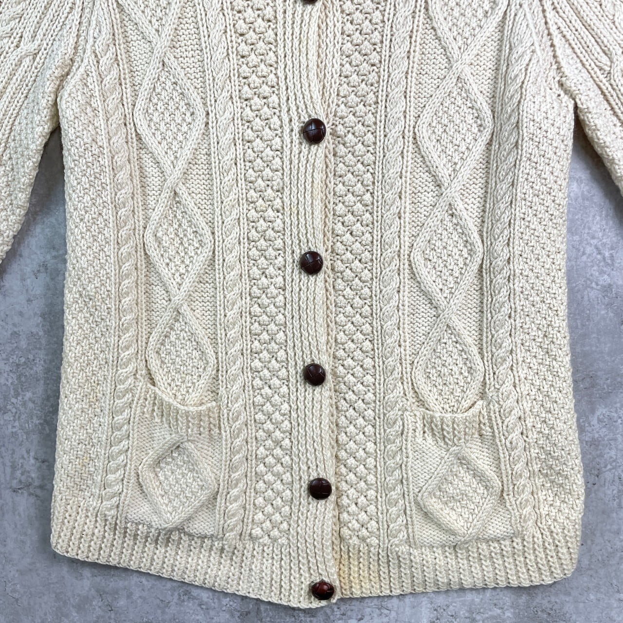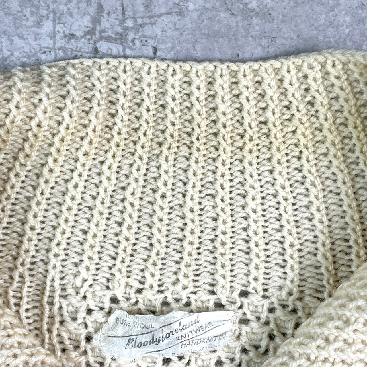 ヴィンテージ Bloodyforeland ハンドニット フィッシャーマンニットカーディガン レディース2XL相当 メンズXL相当 古着 VINTAGE アランセーター ケーブル編み 白【ニットセーター】/ホワイト【VS30-2】