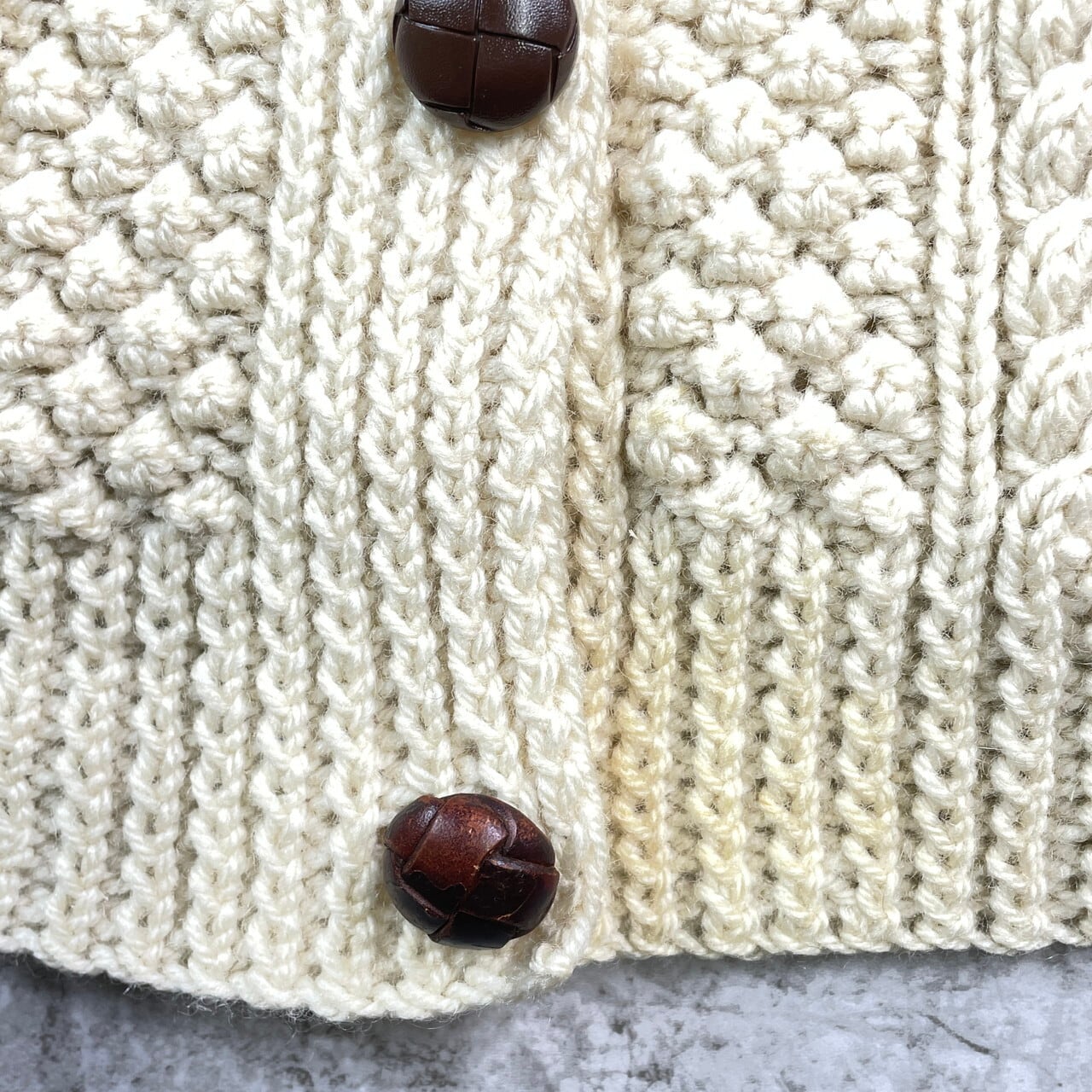 ヴィンテージ Bloodyforeland ハンドニット フィッシャーマンニットカーディガン レディース2XL相当 メンズXL相当 古着 VINTAGE アランセーター ケーブル編み 白【ニットセーター】/ホワイト
